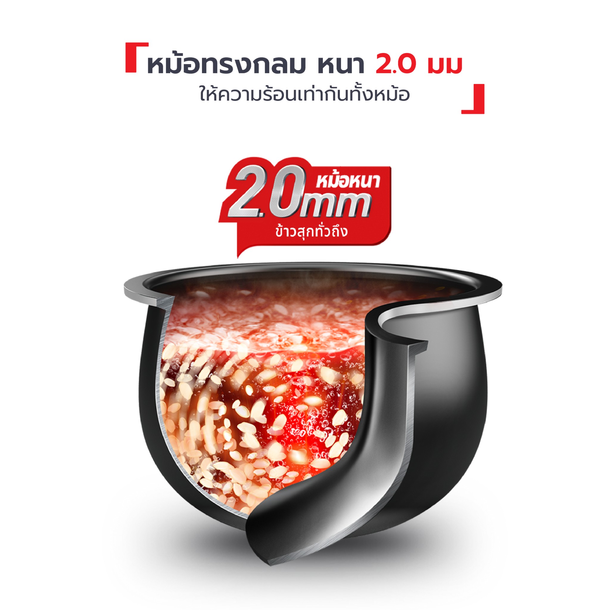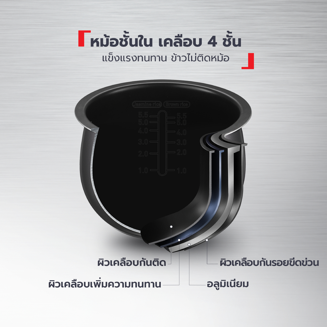 หม้อทรงกลมเอกสิทธิ์เฉพาะช่วยกระจายความร้อนสม่ำเสมอ หม้อชั้นในหนา 2.0 มม เคลือบกันติด 4 ชั้น ล้างง่าย ข้าวไม่ติดก้นหม้อ ฝาชั้นในถอดล้างได้ ลดความกังวลเรื่องกลิ่นหรือข้าวบูด หน้าจอดิจิทัลไฟ LED กดใช้งานง่าย และมี 11 โปรแกรมครบทั้งข้าวหอมมะลิ ข้าวกล้อง ข้าวเหนียว โจ๊ก ซุป นึ่ง ตุ๋น เหมาะกับคนทำงานและครอบครัวที่อยากได้เครื่องเดียวจบแบบคุ้มค่าอย่าง หม้อหุงข้าว Tefal RK736B66 1.8 ลิตร 🍲