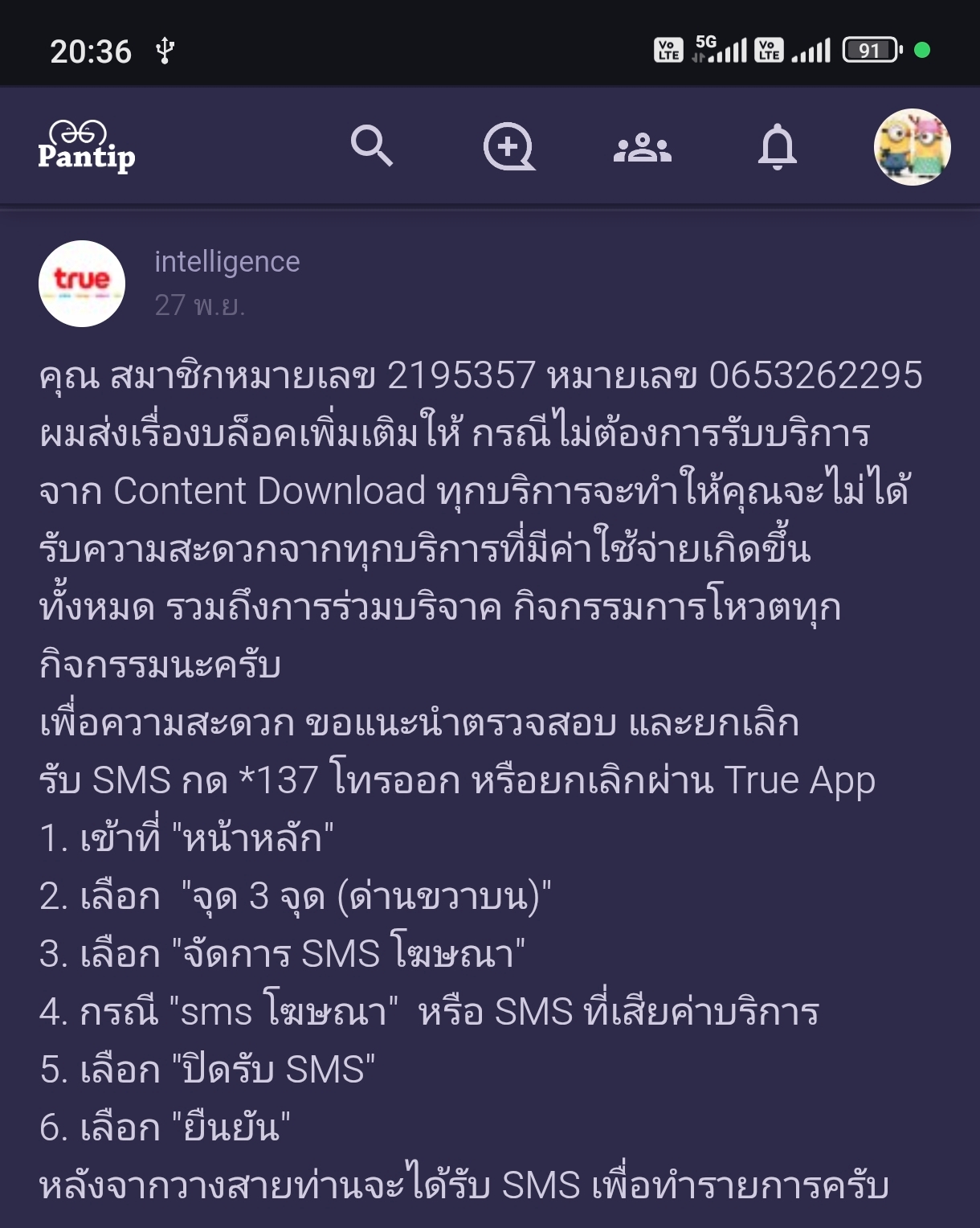 SMS เสียเงิน มาอีกแล้วทั้งที่เคยแจ้งให้ทางทรูบล็อกไว้ไม่ให้สมัคร