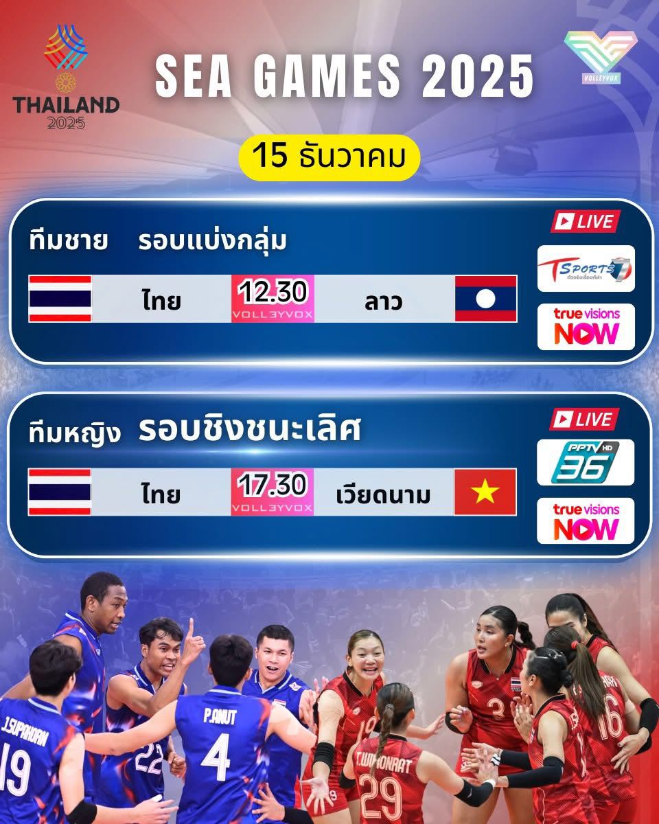 เชียร์ไทย ในซีเกมส์ THAILAND 2025...15/12/68.....ถ่ายทอดเช้า NBT+Tsport+ไทยรัฐ/ช่องวัน+PPTV