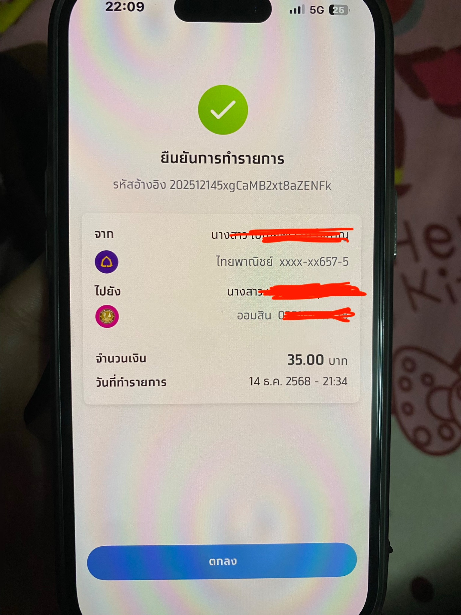 วันที่ 4/11/68 เวลาประมาณ15:40 ได้โอนเงินจากธนาคารออมสินโดยผ่านทางตู้จำนวน 800บาท จากธนาคารออมสิน ไปธนาคารไทยพานิชย์ แต่เงินไม่เข้าปลายทางโทรไป call center ออมสินแล้วก็บอกว่า ให้รอช่วง19:00เงินจะเข้า