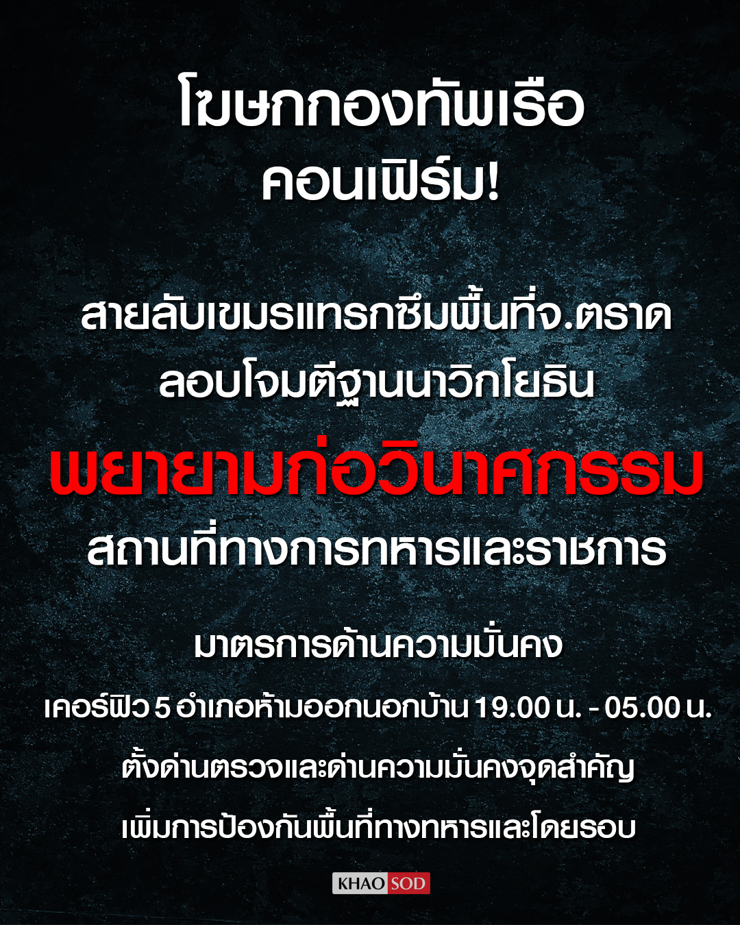 ตามที่ปรากฏกระแสข่าวในสื่อและสื่อสังคมออนไลน์ กรณีกองบังคับการหน่วยเฉพาะกิจนาวิกโยธินตราด (ฉก.นย.ตราด) ถูกโจมตีนั้น