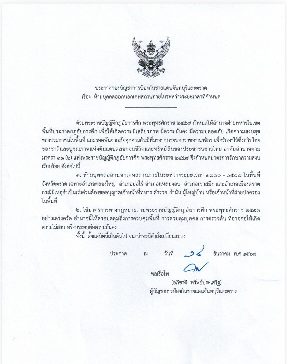ทั้งนี้ กองบัญชาการป้องกันชายแดนจันทบุรีและตราด (กปช.จต.) ได้ดำเนินมาตรการด้านความมั่นคงอย่างเข้มงวดและรอบคอบ เพื่อป้องกันไม่ให้เกิดเหตุลักษณะดังกล่าวขึ้นซ้ำอีก โดยได้มีการ