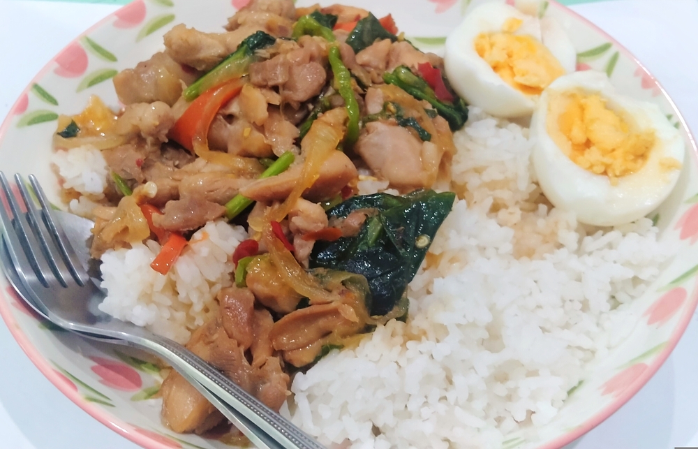 เลือก กะเพราไก่ มาทานกับข้าวสวยที่บ้าน