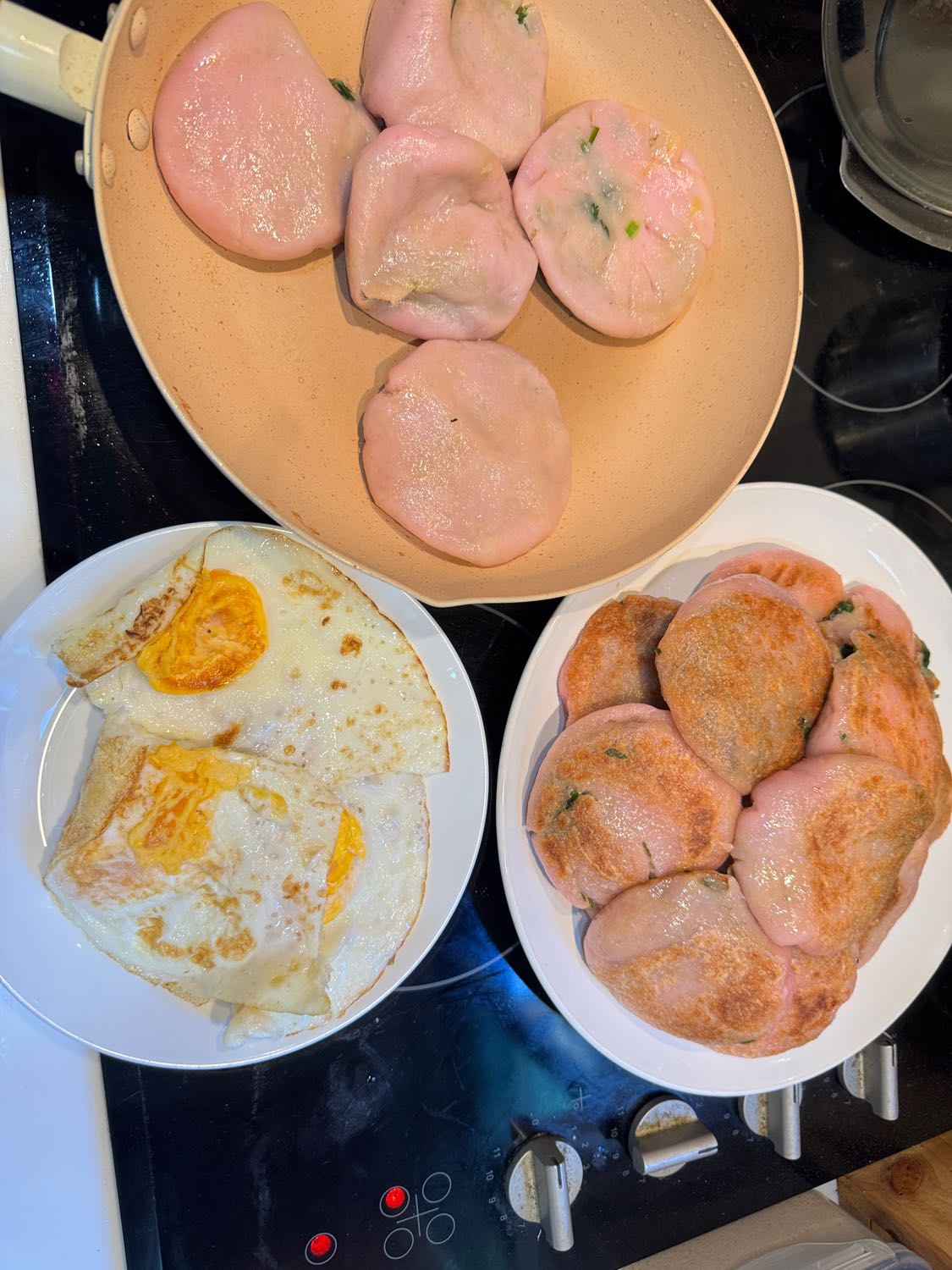 แน่นอนว่าไม่ได้ทำเอง อาโกซื้อมาฝากเมื่อวาน เราเลยทอดไข่ดาวเพิ่มหน่อย รสดซอสพริกสูตรพนัสเข้าไปนิด จบมื้อเช้าสบายท้อง กลัวไม่พอเพิ่มของหวานเป็นกล้วยหอมไหว้1 ลูก และ แมวอัพเกรดค่ะหลังจากอยู่มาเกือบปี ก