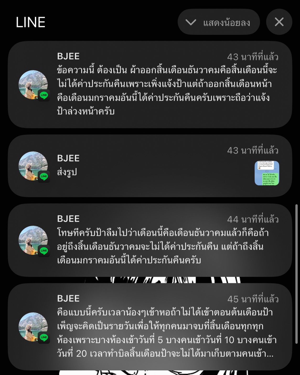 ปรึกษาเพื่อนๆสมาชิกและน้องๆที่ศึกษาในมหาวิทยาลัยขอนแก่น มีเหตุการณ์นึงลูกชายเราพักที่หอพักแห่งนึง มีเงินประกันห้อง4พัน และค่าห้องล่วงหน้า 1 เดือนไม่ได้เซ็นสัญญาเช่า พักมาประมาณ1 ปีกว่า คือห้องโทรมมาก แอร์เก่ากินไฟ ลูกเราก็ได้ไปติดเช่าหอแห่งใหม่ โดยแจ้งทางหอเก่าว่าจะย้ายออก 5 มค. โดยแจ้งวันที่ 5 ธค ทางหอว่าไม่ได้นะต้องแจ้งย้ายออกสิ้นเดือนเท่านั้น ไม่งั้นไม่ได้เงินประกันคืน เรากะบอกลูกไม่ต้องซีเรียสอยู่ต่อไปจนครบวันที่ 5 มค.แล้วย้ายมาเข้าหอใหม่เลย เพราะเราจองไว้แล้ว แต่ทางหอพักอยากจะให้เราย้ายออกสิ้นเดือนธันวาคมนี้เท่านั้น ทางเลือกคือต้องออกสิ้นเดือน เรามีสิทธิอยู่ถึงวันที่ 5 อยู่แล้วนี่คะ หรือยังไง แล้วลูกเราจะไปอยู่ที่ไหน ห้องก็จะเอาคืนเงินประกันก็จะยึด มันใช่ไหมคะ ขอความคิดเห็นหน่อยค่ะ