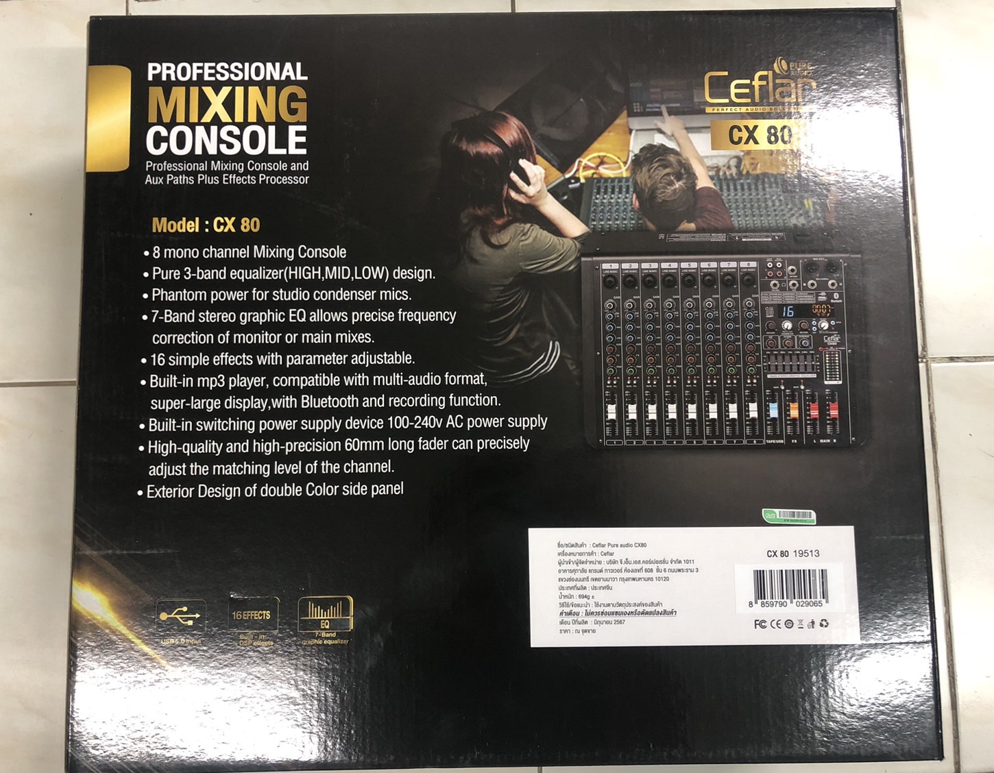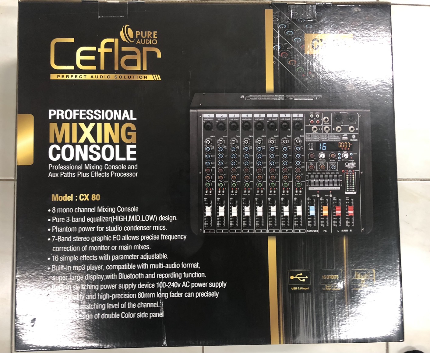 Ceflar CX80 มิกเซอร์ พร้อมเอฟเฟคแท้ มีช่องต่อ USB MP3 และ ฟังก์ชั่น Bluetooth ส่งสัญญาณเสียงไร้สายควบคุมระดับเสียงด้วยวอลุ่มสไลด์ มีราคาถูก ใช้งานง่าย