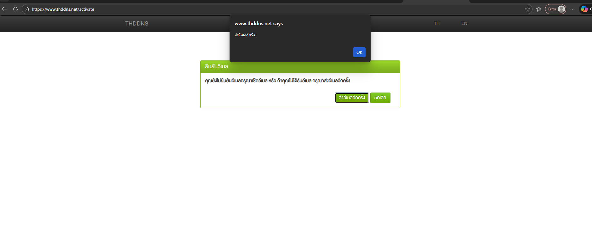 มีใครเจอปัญหายืนยันการลงทะเบียนใช้งาน THDDNS บ้างมั้ยครับ