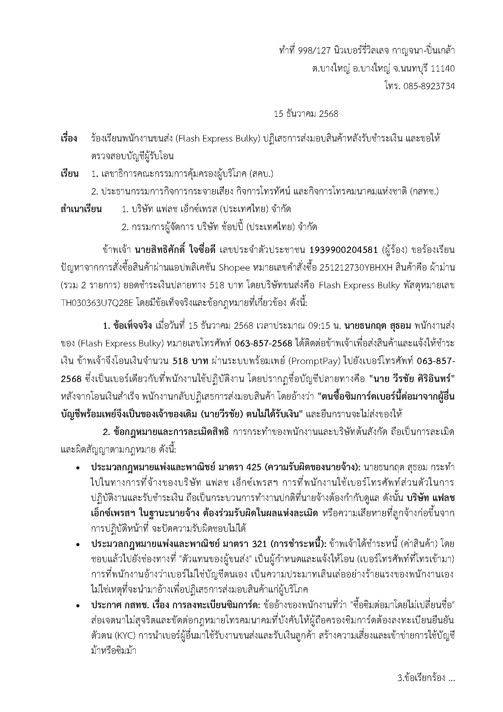 ขอแบ่งปันการติดต่ออะไร flash ไม่ได้เลย หนักงานส่งของโทรมาแค่บอกให้โอน COD สรุปเบอร์ที่ใช้งานไม่ใช่เบอร์ตัวเอง