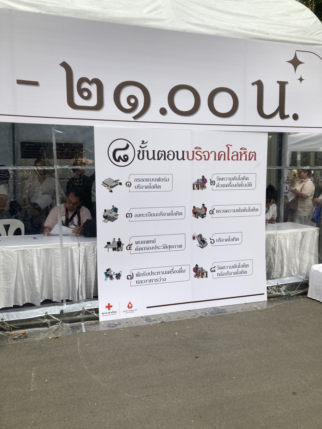 เมื่อผ่านขั้นตอนทุกอย่างแล้วค่อยขึ้นไปบนรถบริจาค มีคนต่างชาติมาบริจาคเยอะอยู่