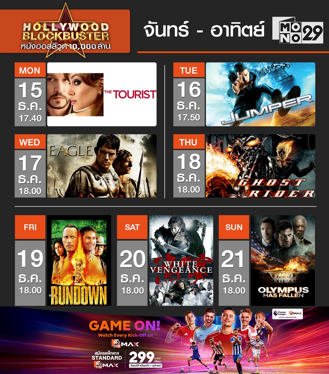 Hollywood Blockbuster หนังฮอลลีวูด 10,000 ล้าน วันที่ 15 - 21 ธันวาคม เวลา 18.00 น. ทางช่อง MONO29