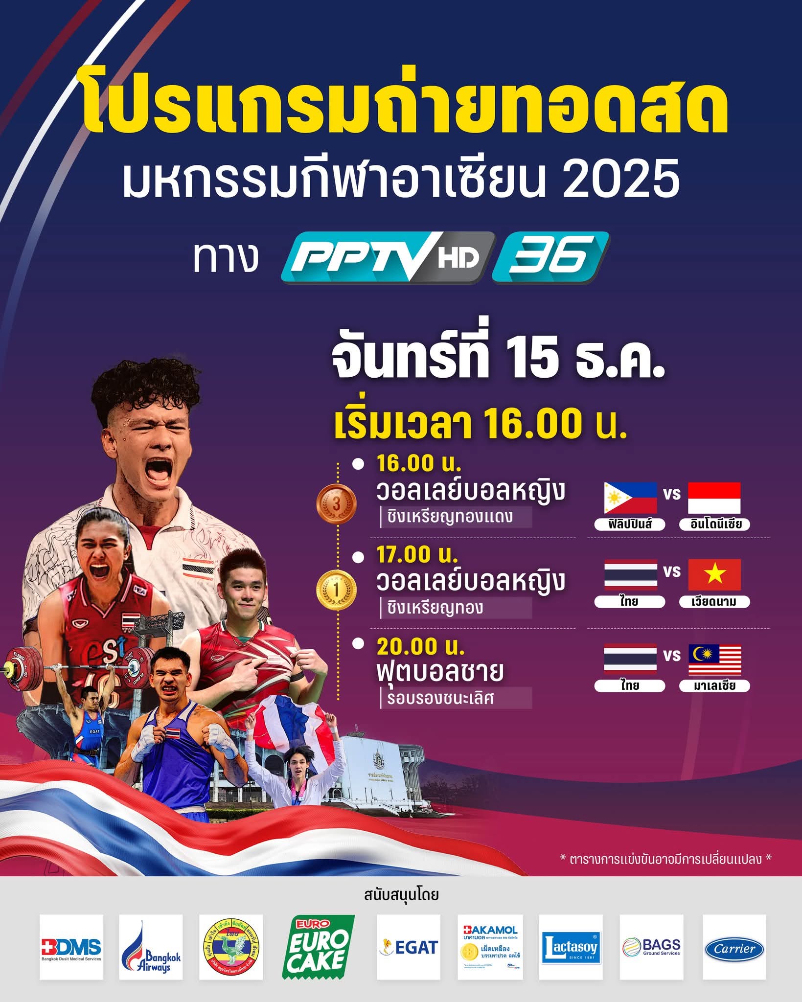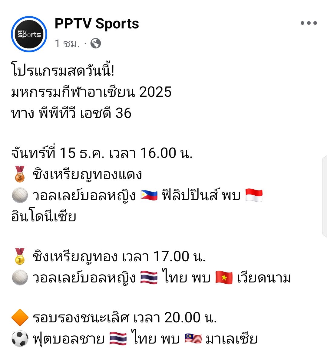 เชียร์ไทย ในซีเกมส์ THAILAND 2025...15/12/68.....ถ่ายทอดเช้า NBT+Tsport+ไทยรัฐ/ช่องวัน+PPTV