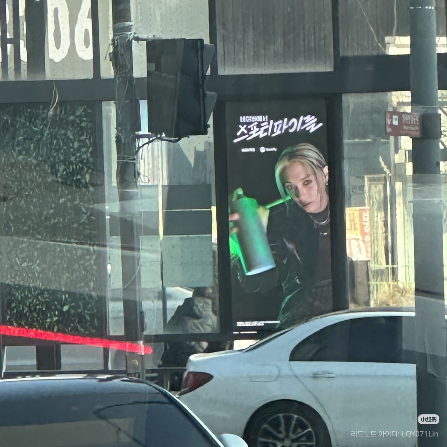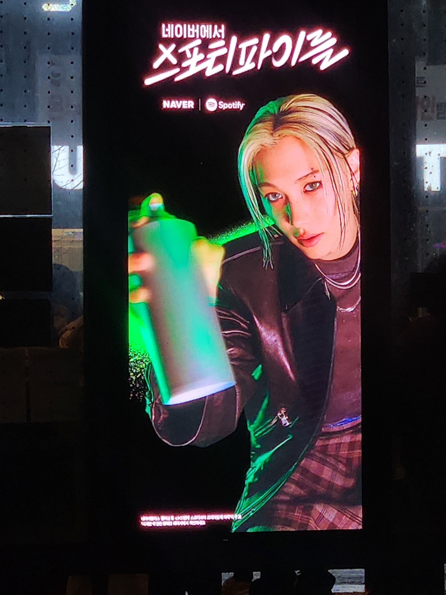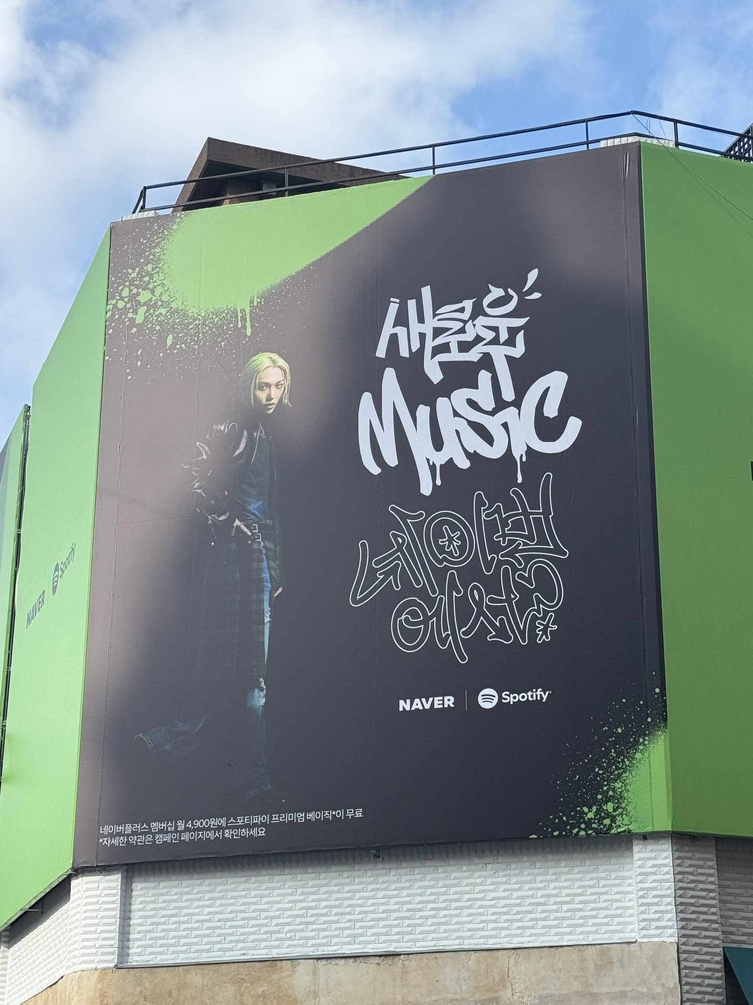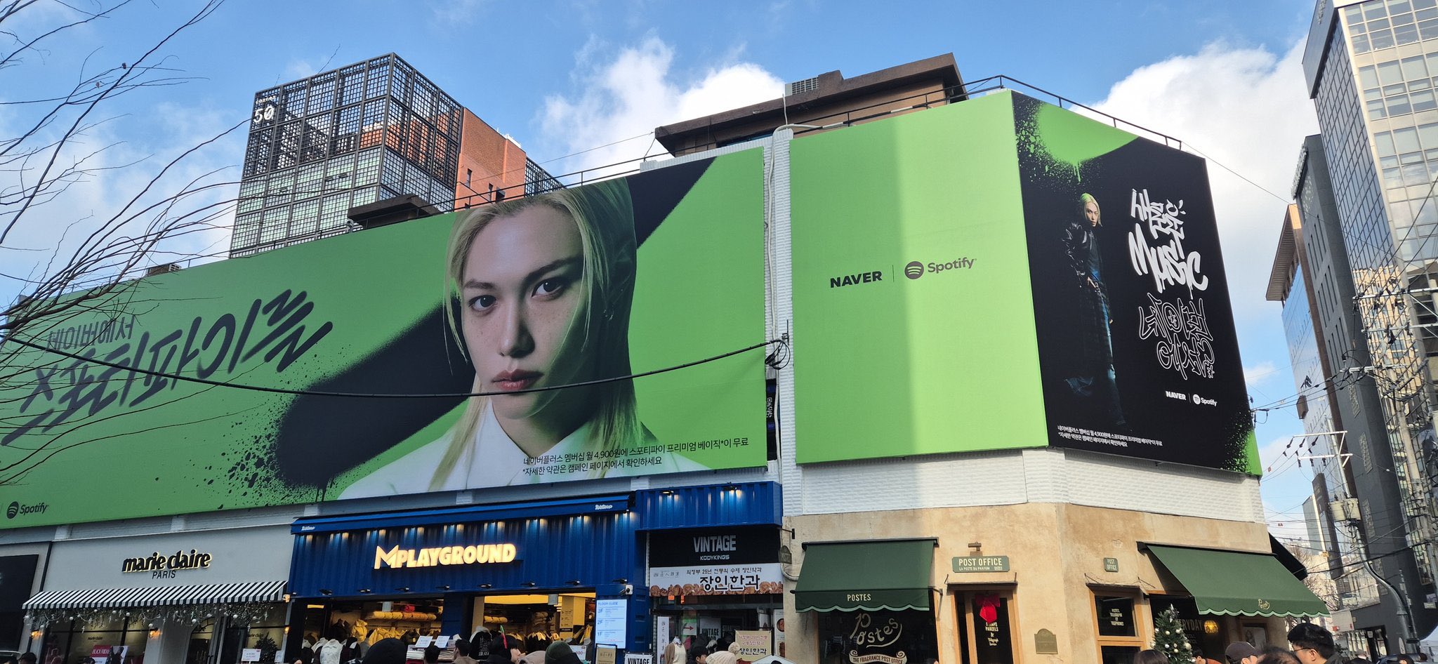 โฆษณาแคมเปญ “Spotify on Naver” ถูกพบเห็นในย่านดงกโยดง เขตมาโป กรุงโซล