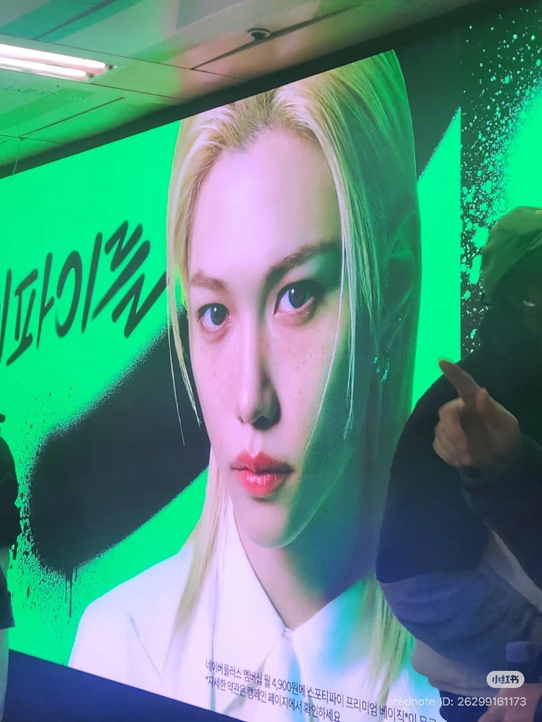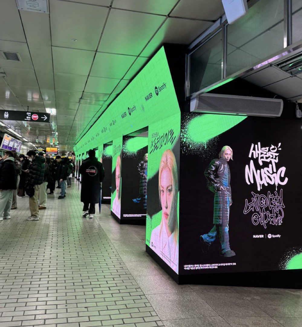 โฆษณาแคมเปญ “Spotify on Naver” ถูกพบเห็นที่ป้ายโฆษณาภายในสถานีมหาวิทยาลัยฮงอิก กรุงโซล