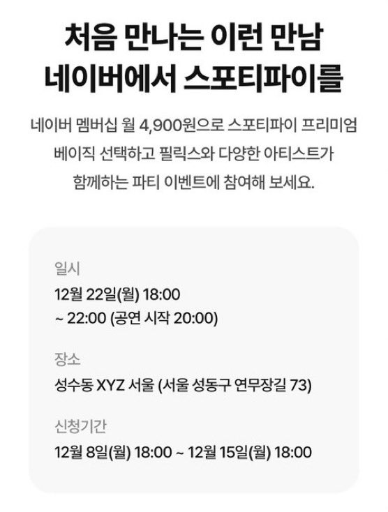 และงานปาร์ตี้ Spotify x Naver จะจัดขึ้นที่ซองซูดง กรุงโซล ในวันที่ 22 ธันวาคม 2025