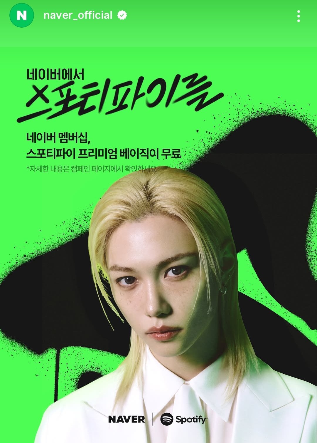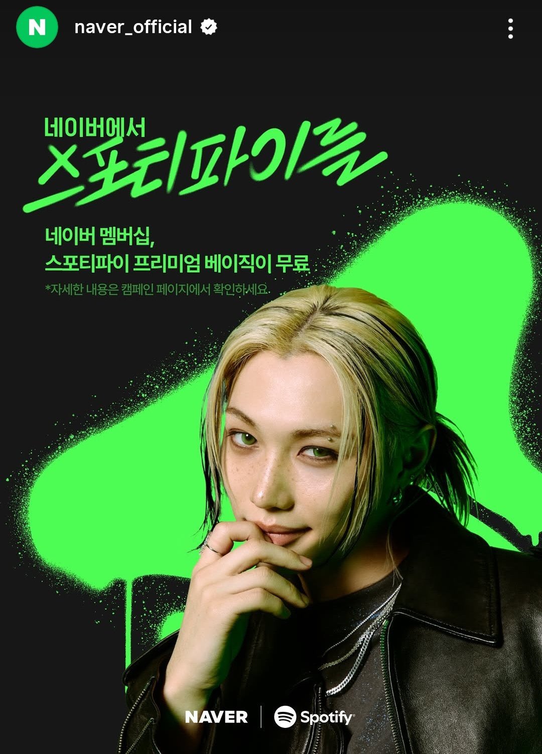 NAVER หนึ่งในแพลตฟอร์มดิจิทัลที่ใหญ่ที่สุดและทรงพลังที่สุดของเกาหลีใต้ ได้ร่วมมืออย่างเป็นทางการกับ Spotify ผู้นำด้านสตรีมมิ่งระดับโลก เพื่อร่วมกันสร้างแคมเปญใหญ่ครั้งแรก โดย Felix ได้รับเลือกให้เป็นดาวเด่นของการเปิดตัว ซึ่งยิ่งตอกย้ำความร่วมมือนี้ให้แน่นแฟ้นยิ่งขึ้น