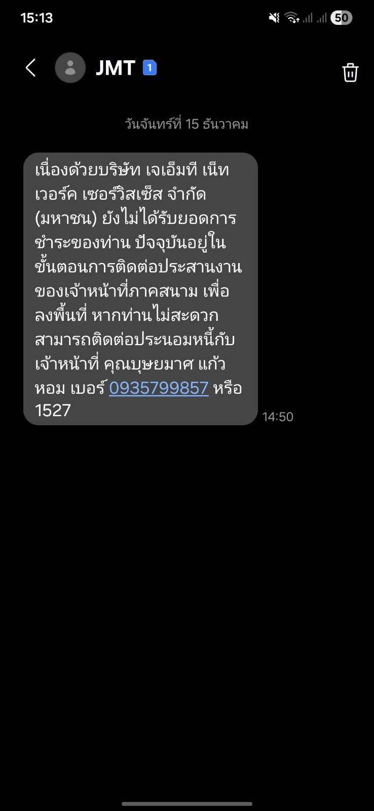 ได้รับ sms ทวงหนี้จาก JMT ทั้ง ๆ ที่ไม่ได้กู้หนี้อะไร ทำยังไงดีค่ะ