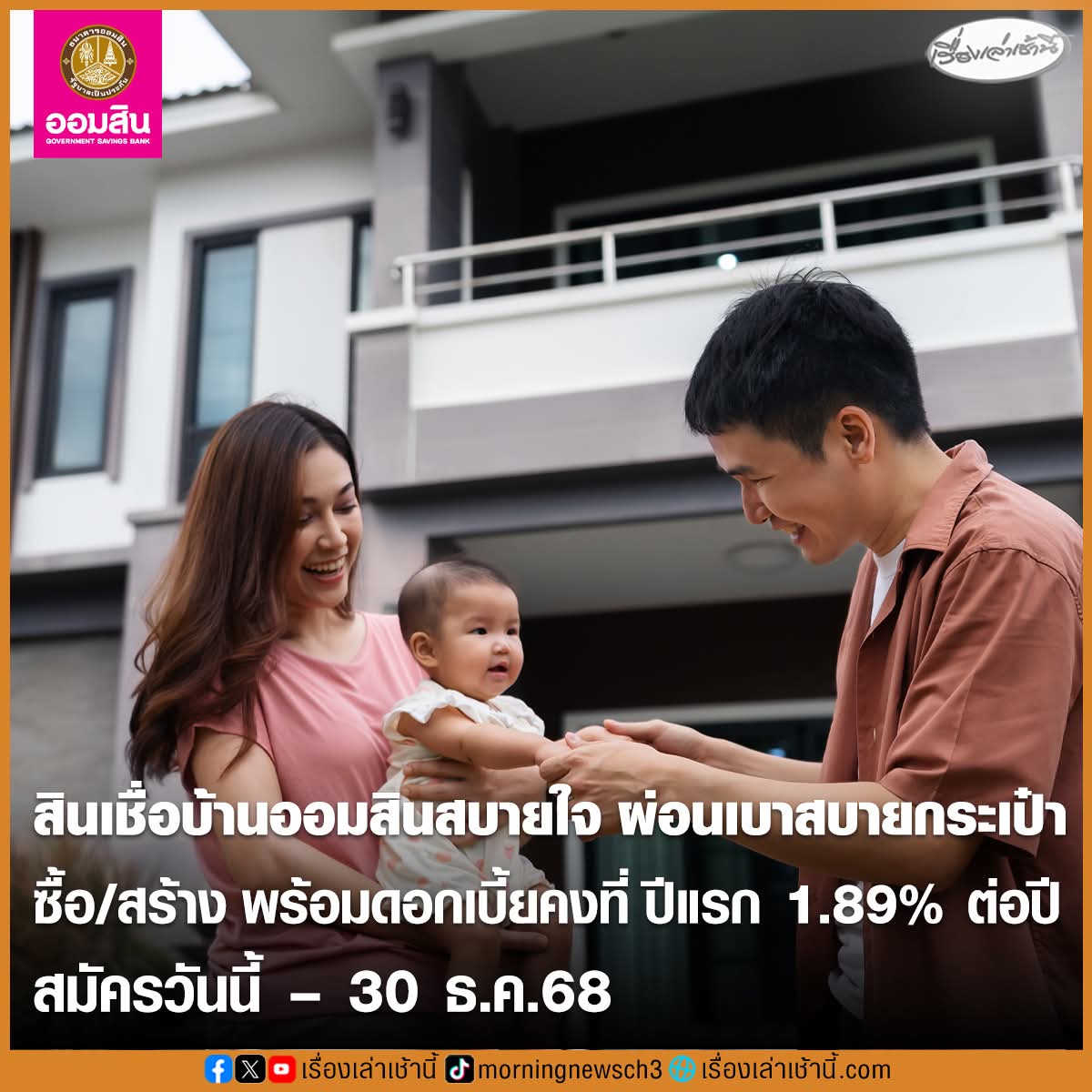 ออมสินช่วยให้การมีบ้านไม่ใช่เรื่องไกลเกินเอื้อม ด้วยสินเชื่อบ้านออมสินสบายใจ จะซื้อหรือสร้าง ก็ผ่อนชิลล์ ๆ สบายกระเป๋า