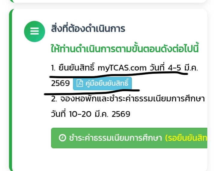 ตามภาพเลยค่ะ คือเราจะยืนยันสิทธิ์ในระบบ TCAS ก็คือวันที่ 4-5 มี.ค. 2569 ใช่ไหมค่ะ แล้ววันนี้คือ วันที่15 ธ.ค. 2568 คือยังยืนยันสิทธิ์ไม่ได้ใช่ไหมค่ะ
