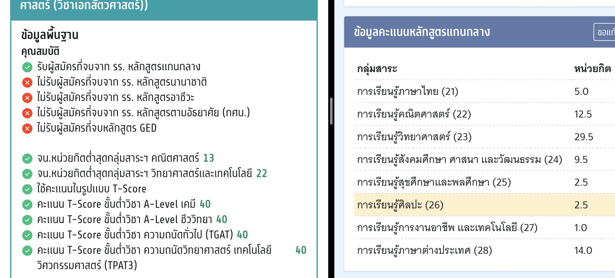 มีหน่วยกิตวิทย์21 สามารถยื่นสาขาที่ต้องใช้22หน่วยกิตได้ไหมครับ