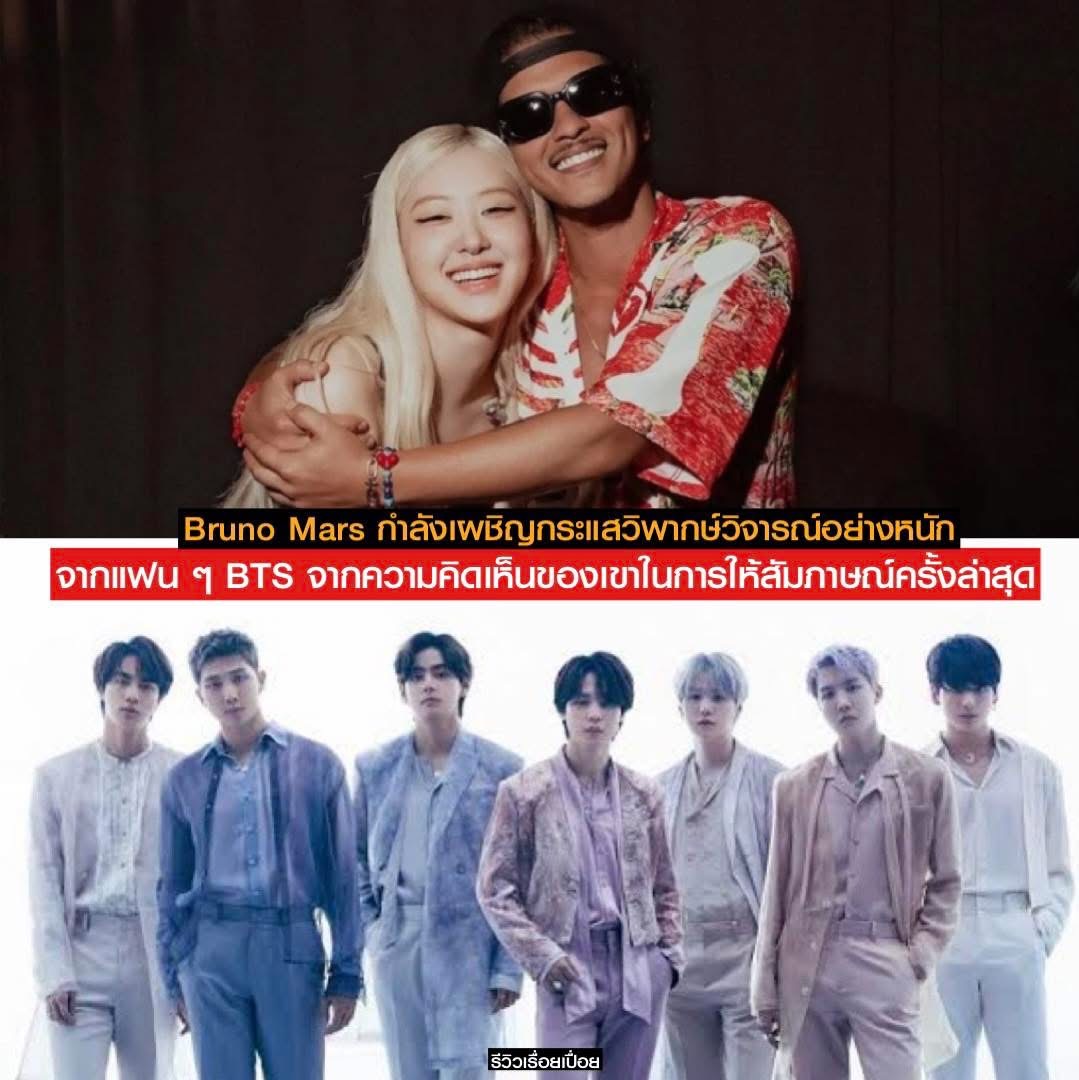 Bruno Mars กำลังเผชิญกระแสวิพากษ์วิจารณ์อย่างหนักจากแฟน ๆ BTS จากความคิดเห็นของเขาในการให้สัมภาษณ์ครั้งล่าสุด