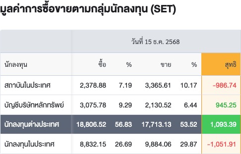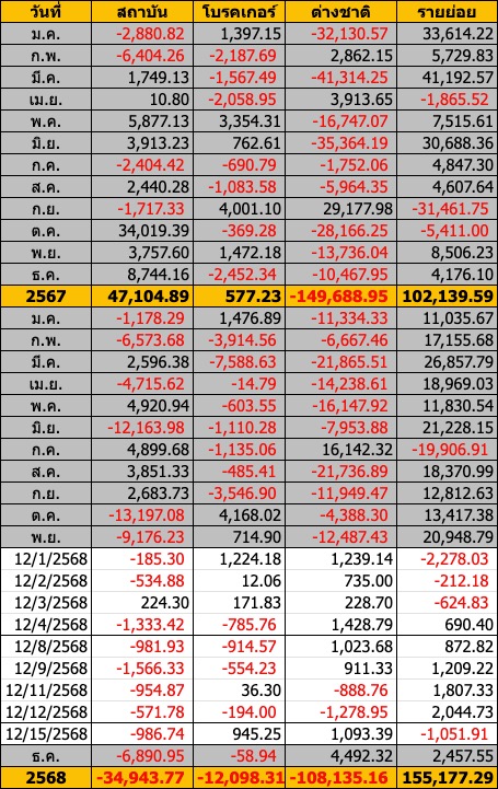 Sinthorn Summary 12/12/2568 : ต่างชาติขายสุทธิ -1,278.95 ลบ.