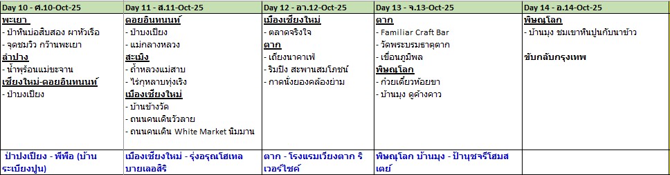 จ.6 ถึง พฤ.9 ตค.25 ทำงานที่พะเยา