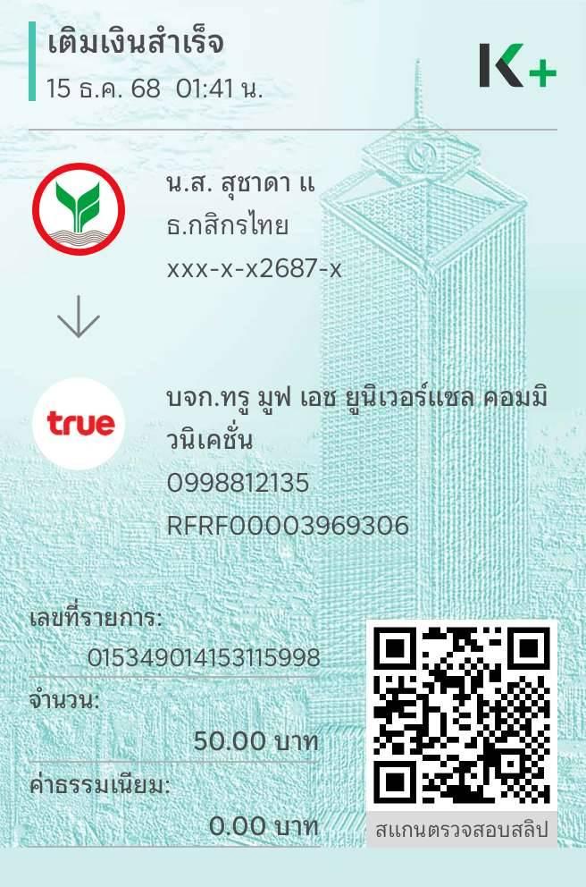 บริการใจดีให้ยืมทรูบังคับส่งแพ็คเกจเน๊ตมาแล้วจะหักเงิน