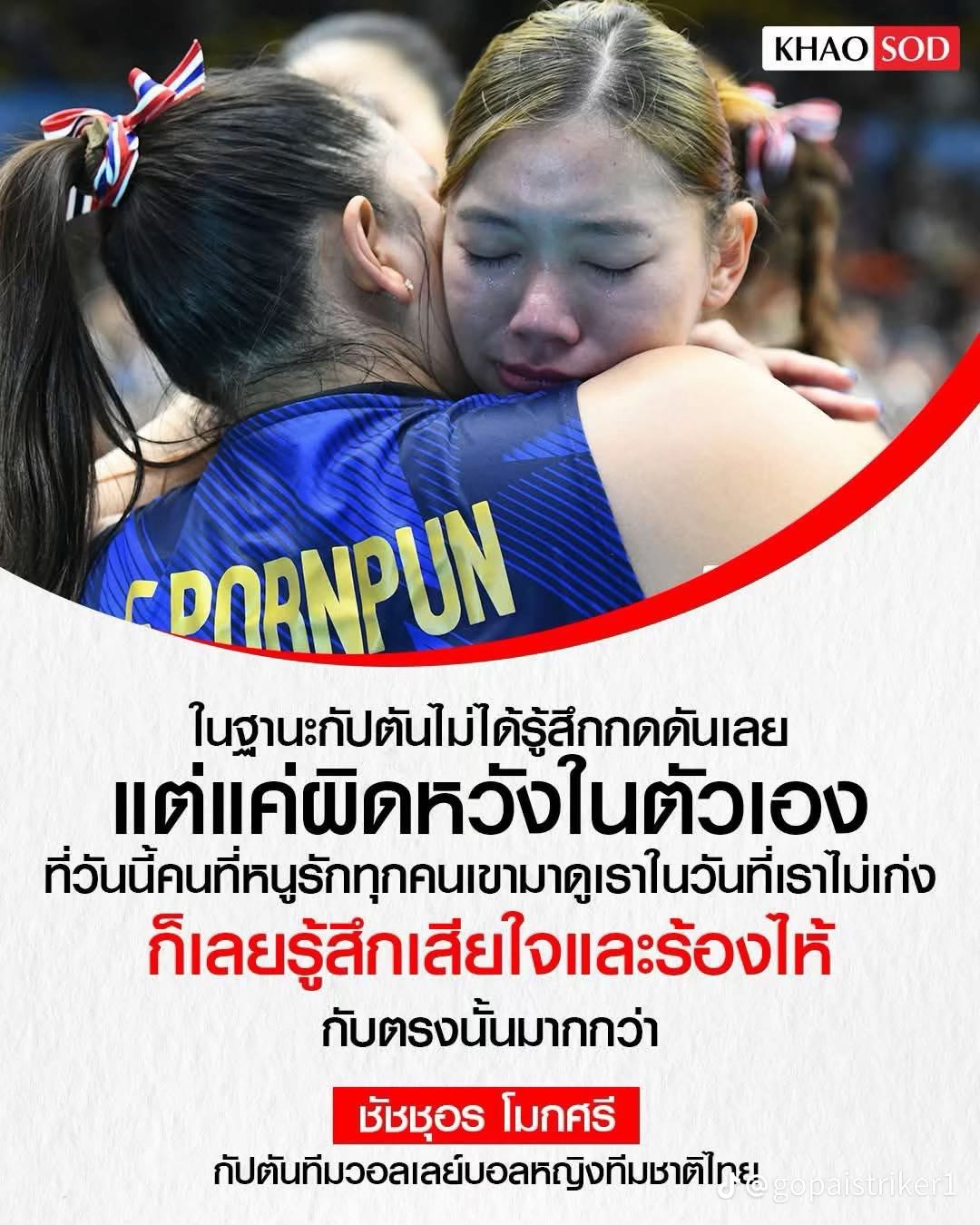 คือเข้าใจอารมณ์ของแฟนๆ นะที่โมโหซีนที่ชีลงมาตบติดเน็ตหรือแม้กระทั่งนัดอื่นๆ ที่ชีตีไม่ค่อยตาย แต่อย่าลืมนะว่าชีอายุแค่ 20 เอง ตอน VNL ก็ไม่ใช่ชีกับยัยออมหรอที่คอยเป็นตัวบุกหัวเสาให้ทีมไทยในช่วงที่สาวเ