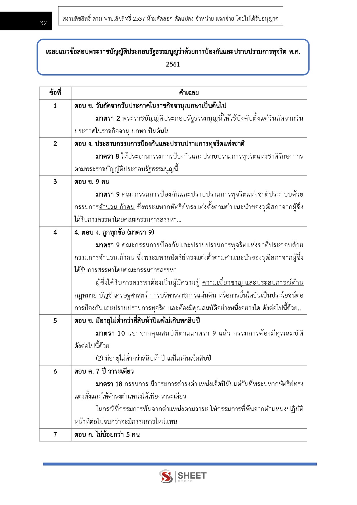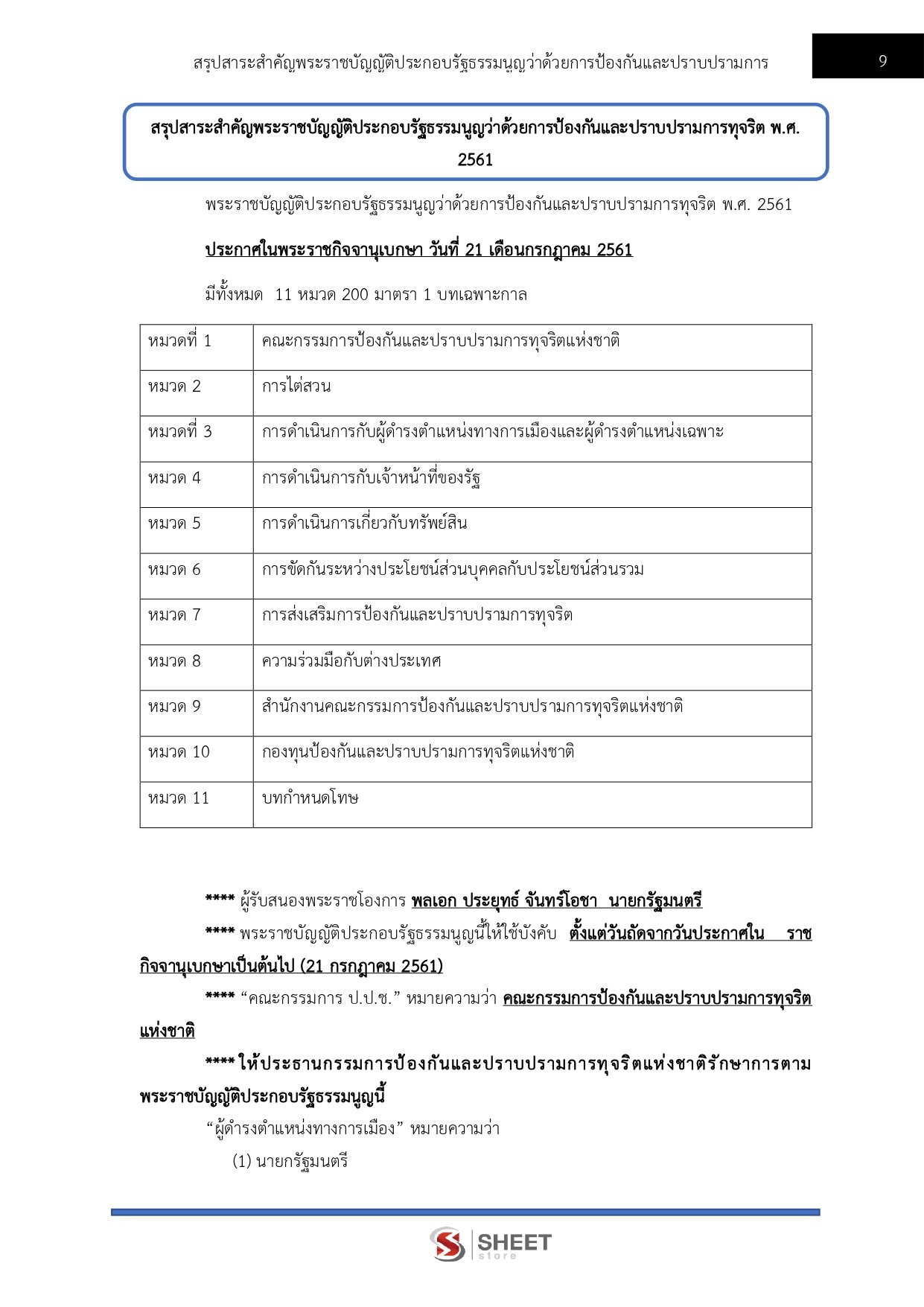 - แนวข้อสอบพระราชบัญญัติประกอบรัฐธรรมนูญว่าด้วยการป้องกันและปราบปรามการทุจริต พ.ศ. 2561