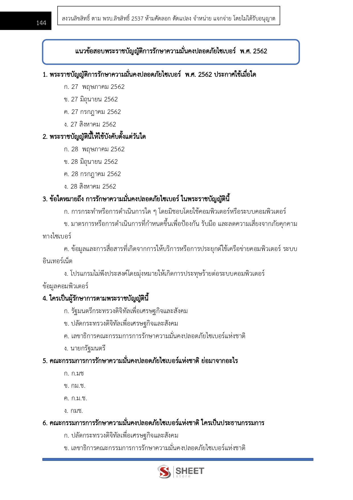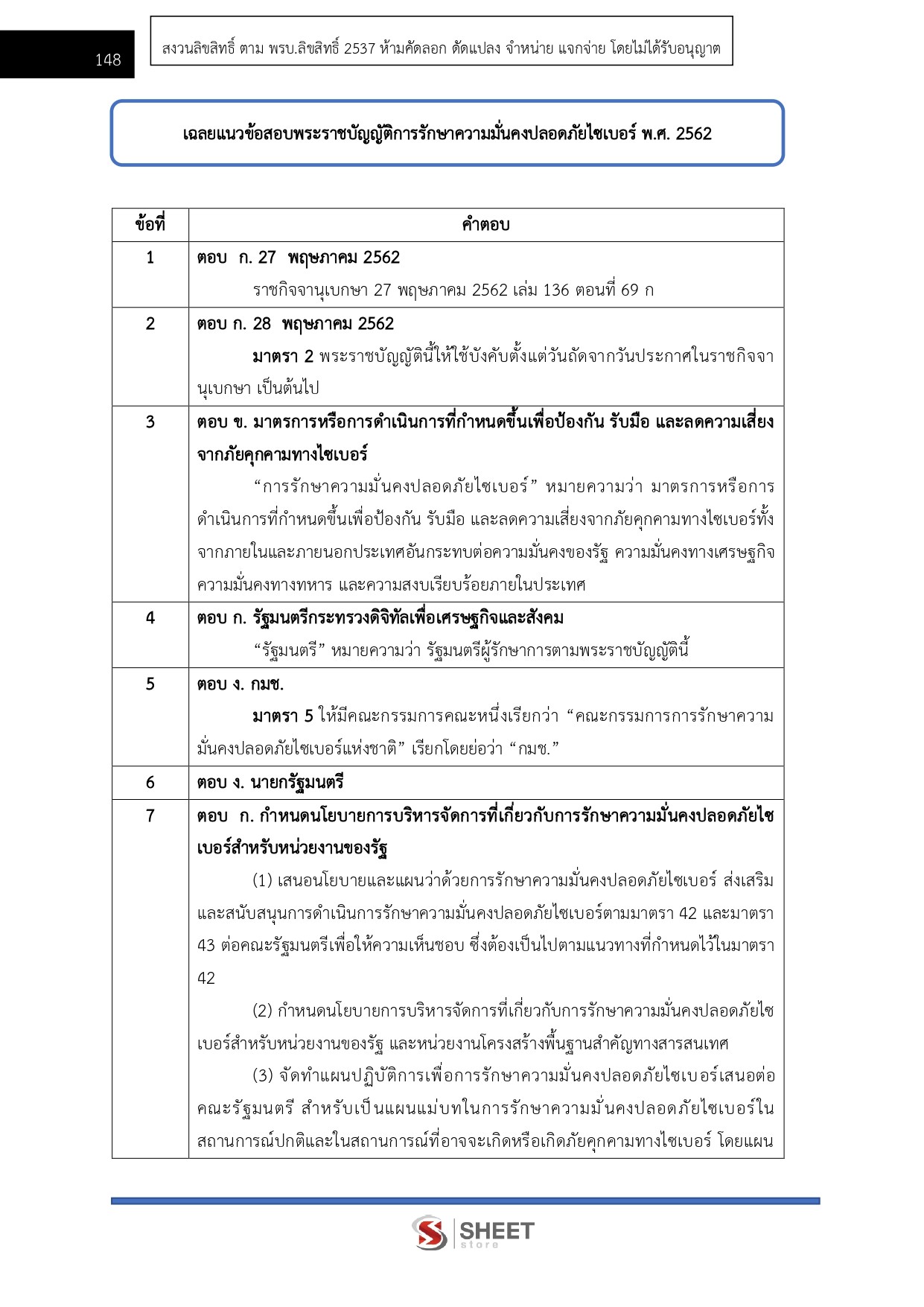 - แนวข้อสอบพระราชบัญญัติการรักษาความมั่นคงปลอดภัยไซเบอร์ พ.ศ. 2562