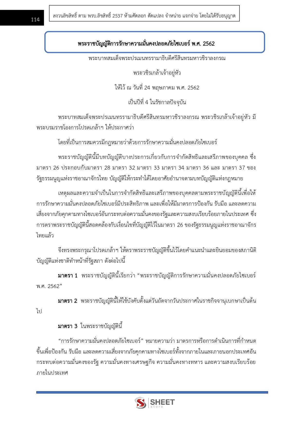 - พระราชบัญญัติการรักษาความมั่นคงปลอดภัยไซเบอร์ พ.ศ. 2562