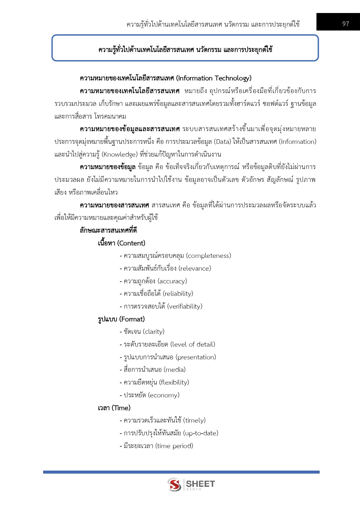 - ความรู้ทั่วไปเกี่ยวกับเทคโนโลยีสารสนเทศ นวัตกรรม และการประยุกต์ใช้