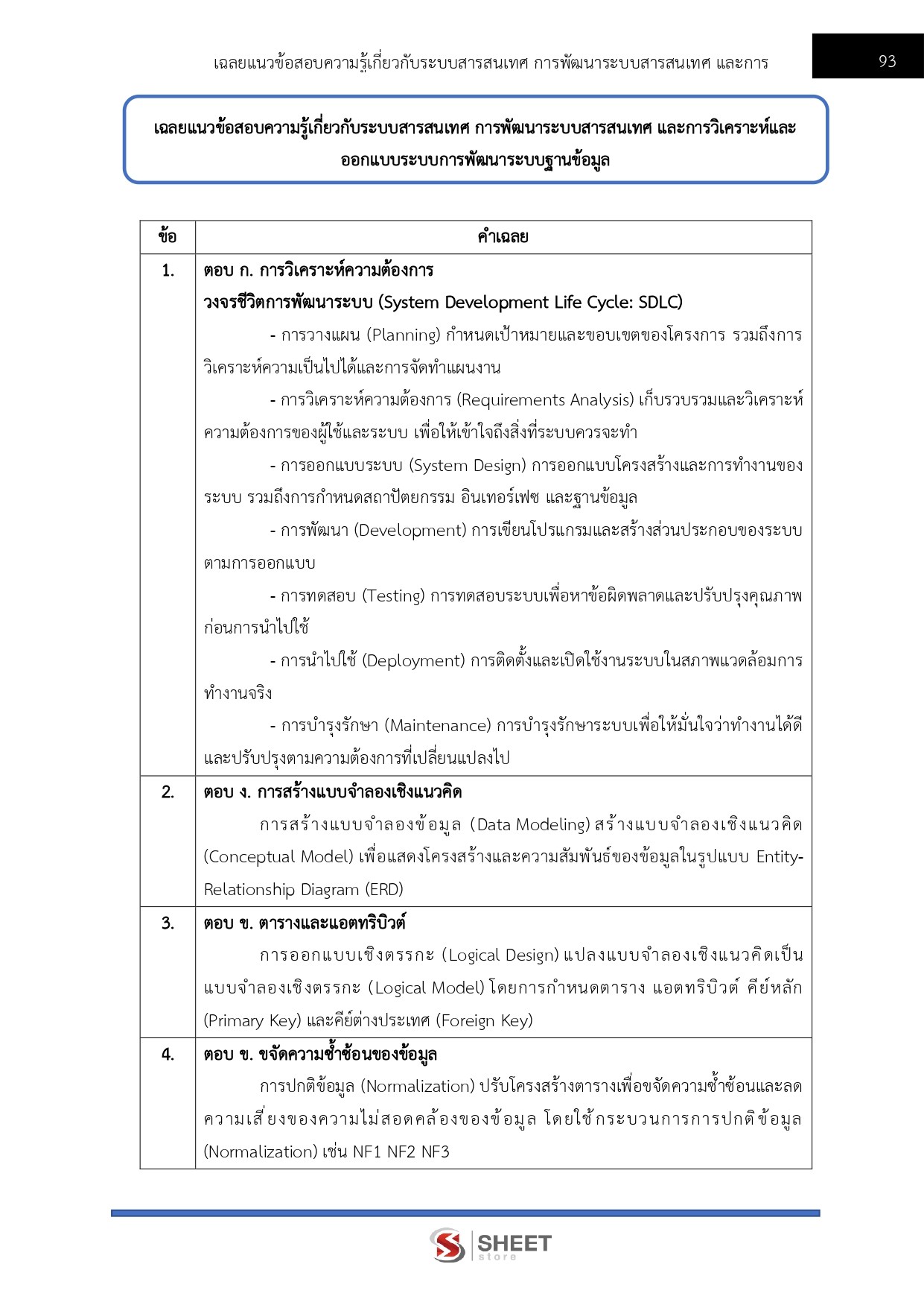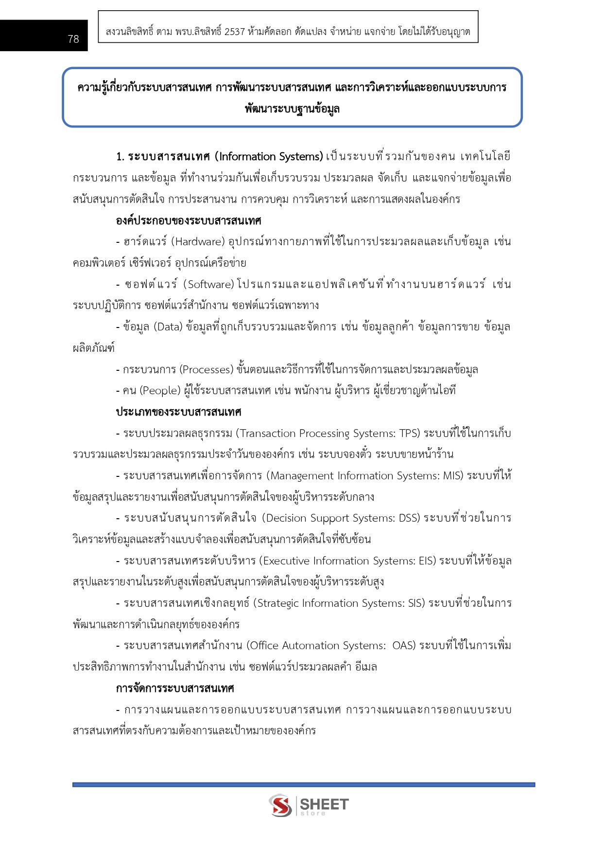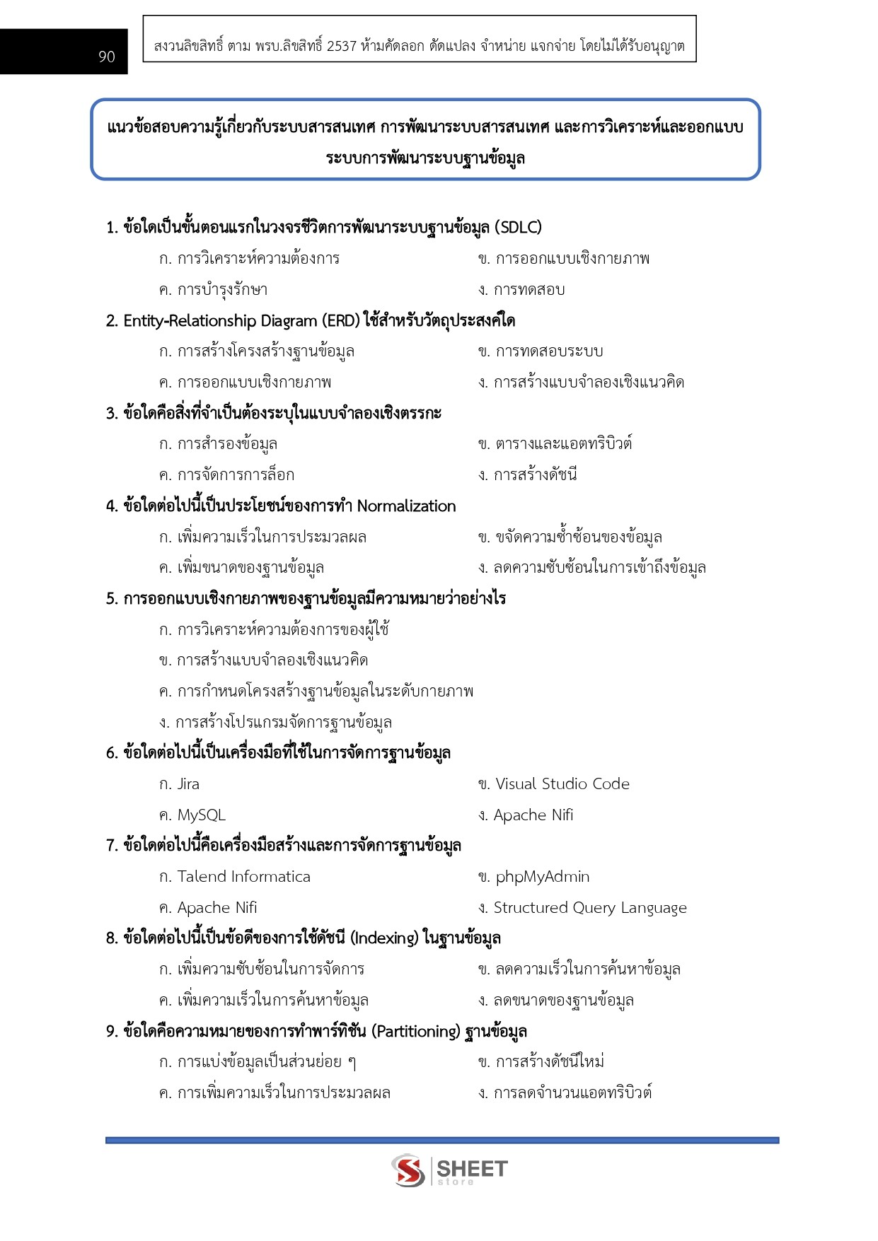 - แนวข้อสอบความรู้เกี่ยวกับระบบสารสนเทศ การพัฒนาระบบสารสนเทศ และการวิเคราะห์และออกแบบระบบการพัฒนาระบบฐานข้อมูล