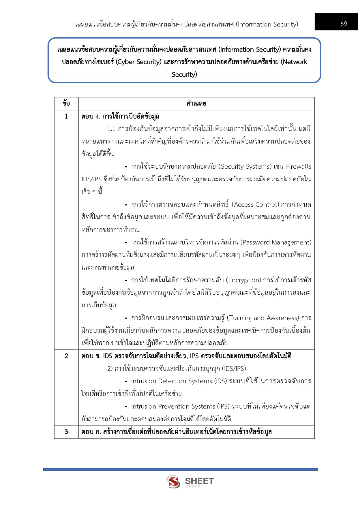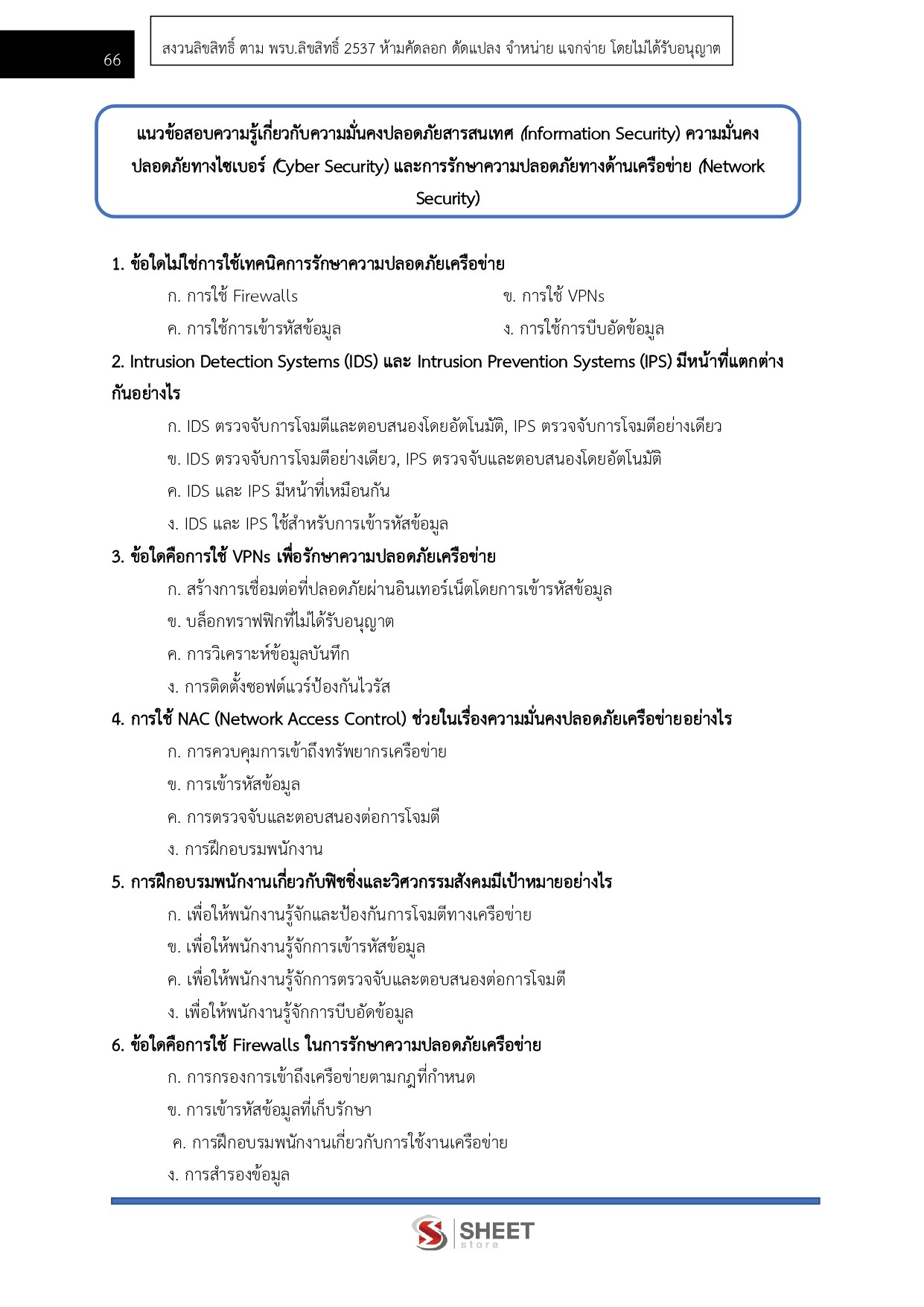 - แนวข้อสอบความรู้เกี่ยวกับความมั่นคงปลอดภัยสารสนเทศ (Information Security) ความมั่นคงปลอดภัยทางไซเบอร์ (Cyber Security) และการรักษาความปลอดภัยทางด้านเครือข่าย (Network Security)