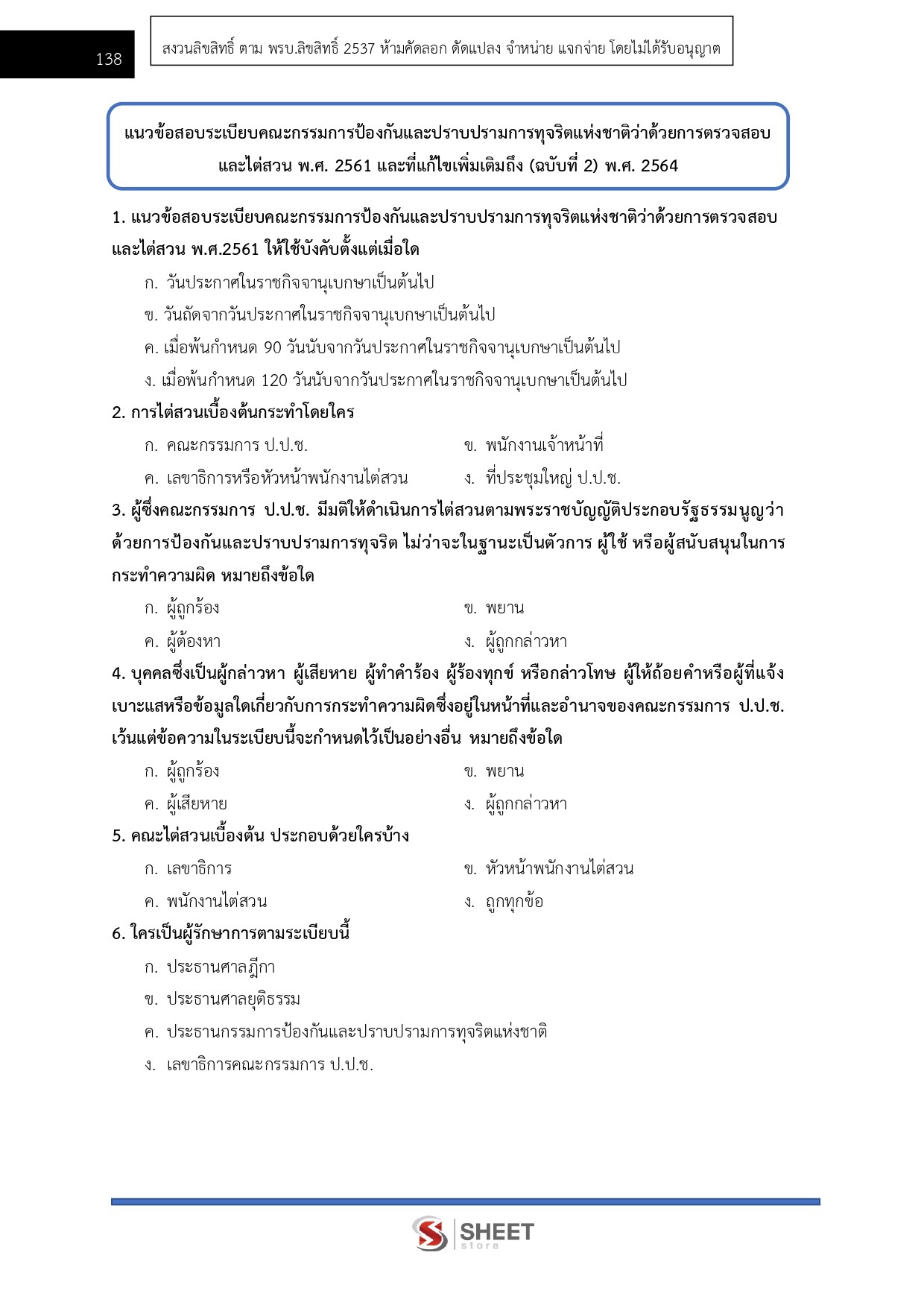 - แนวข้อสอบระเบียบคณะกรรมการป้องกันและปราบปรามการทุจริตแห่งชาติว่าด้วยการตรวจสอบและไต่สวน พ.ศ. 2561 และที่แก้ไขเพิ่มเติม (ฉบับที่ 2) พ.ศ. 2564