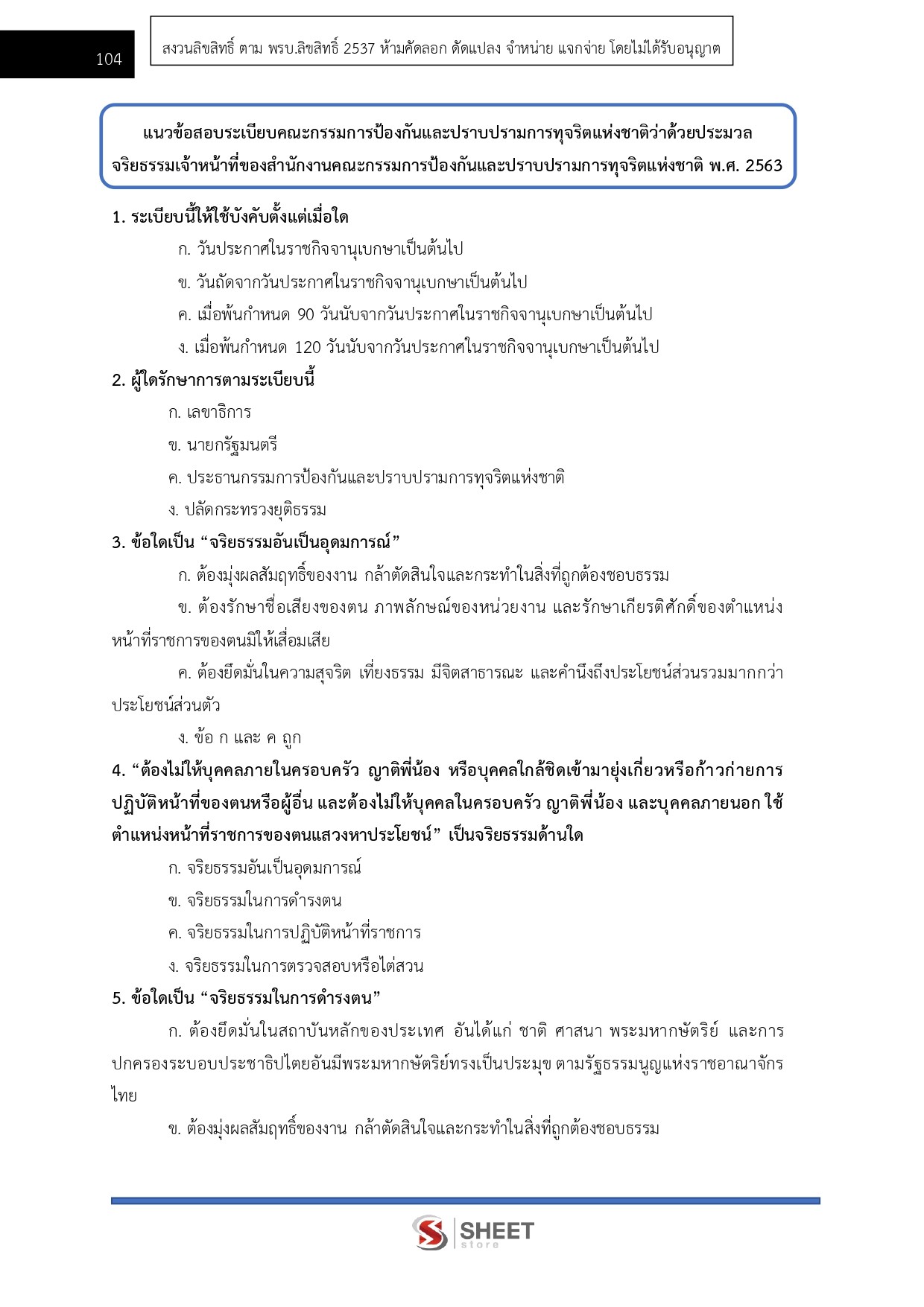 - แนวข้อสอบระเบียบคณะกรรมการป้องกันและปราบปรามการทุจริตแห่งชาติว่าด้วยประมวลจริยธรรมเจ้าหน้าที่ของสำนักงานคณะกรรมการป้องกันและปราบปรามการทุจริตแห่งชาติ พ.ศ. 2563