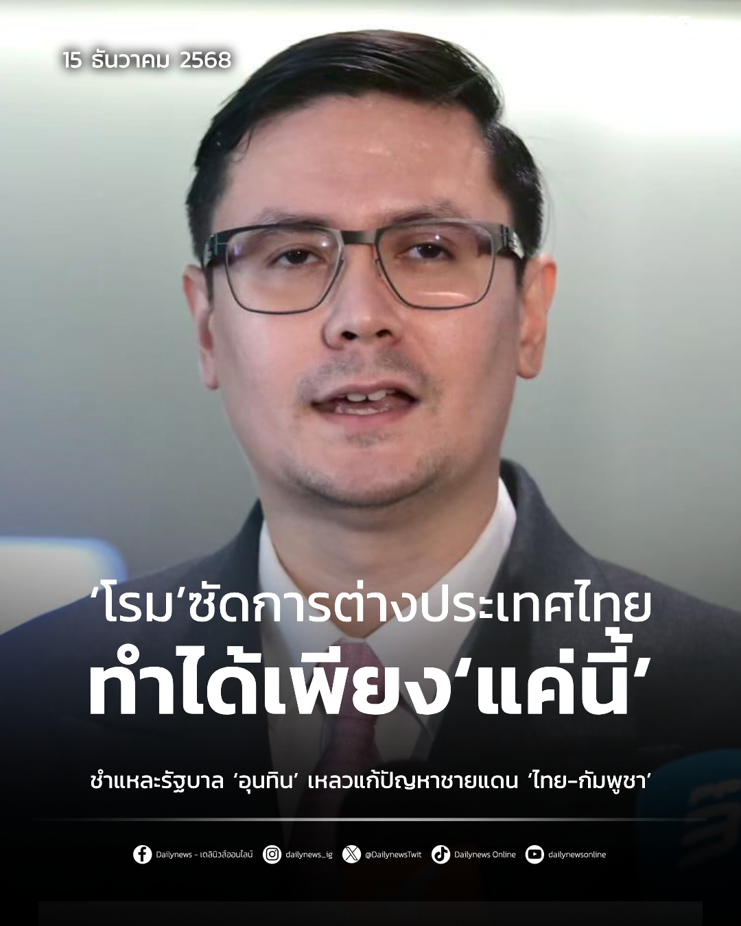 ‘โรม’ซัดการต่างประเทศไทยทำได้เพียง‘แค่นี้’ ปมขัดแย้ง ‘ไทย-กัมพูชา’ ชำแหละความล้มเหลวการแก้ปัญหาชายแดนของรัฐบาล ‘อนุทิน’เปลี่ยนสถานการณ์จาก ‘โลกอยู่ข้างไทย’ ไปสู่ ‘โลกล้อมไทย’ หวั่นกัมพูชามีเครื่องจักรสงครามที่ อาจทำให้ความขัดแย้งยืดเยื้อกว่าที่คาดไว้