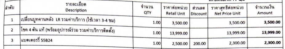 เปลี่ยนบูทคานหลัง (ซ้าย-ขวา) ฝั่งละข้าง =3,500