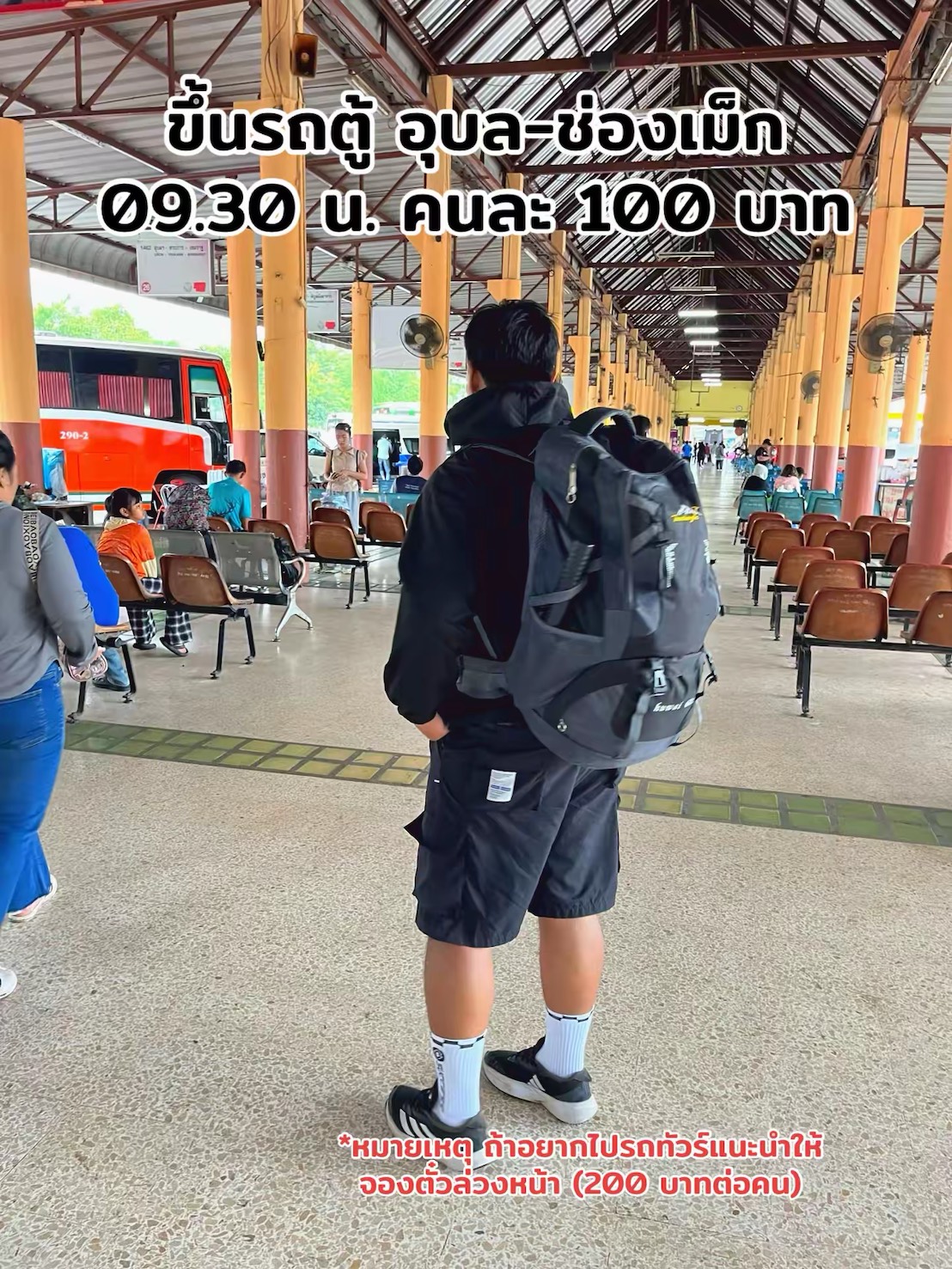 1.เริ่มที่ บขส.อุบลฯ มีให้เลือก 2 ตัวเลือก คือ รถทัวร์-ปากเซ 200/คน(แนะนำให้จอง) และรถตู้-ช่องเม็ก 100/คน รถออกทุกชั่วโมง