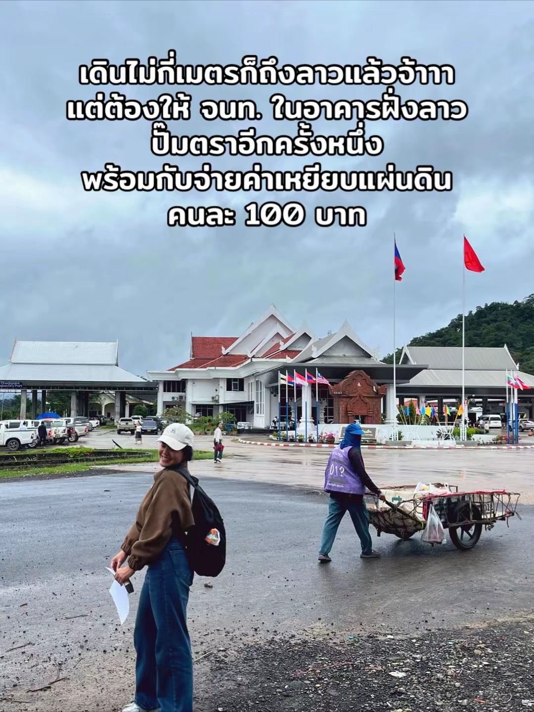 6.เดินเข้าไปในอาคารด่านวังเต่าเพื่อให้เจ้าหน้าที่ฝั่งลาวปั๊มเอกสารอีกและเสียค่าเหยียบแผ่นดิน คนละ 100 บาท