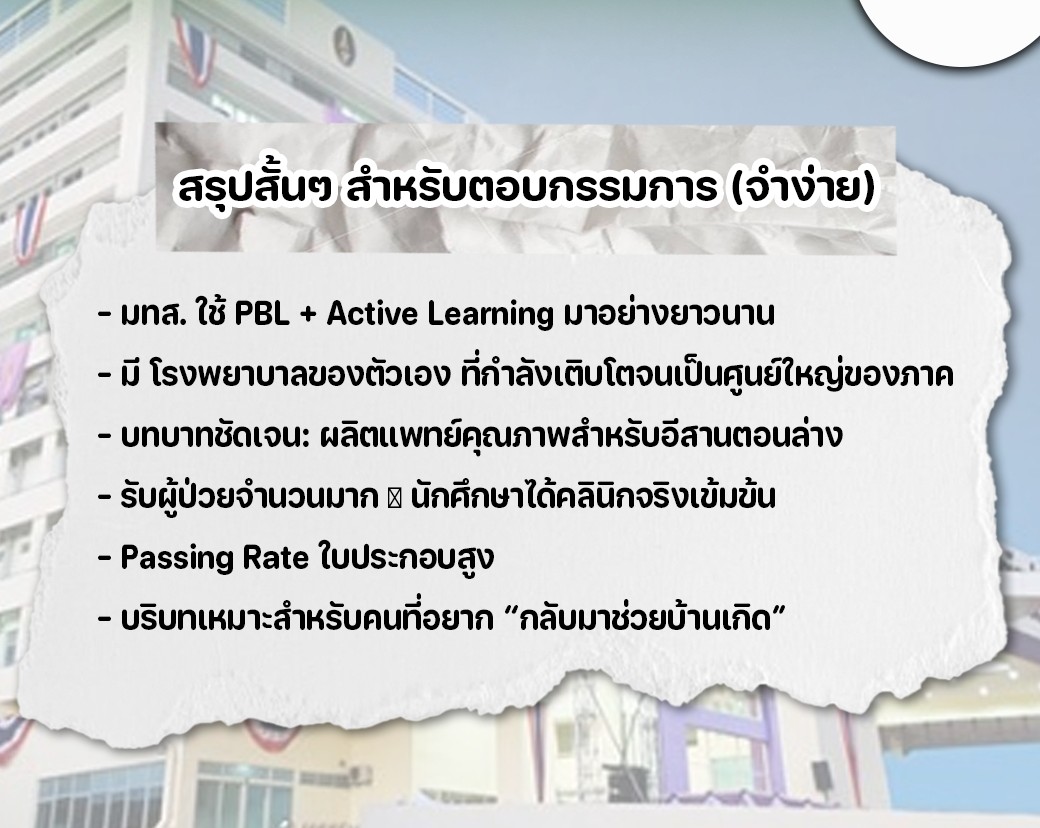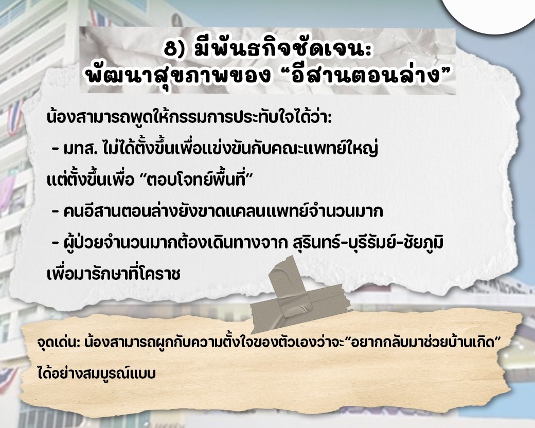 หากน้อง ๆ มีความตั้งใจอยากกลับไปพัฒนาบ้านเกิด หรืออยากเป็นแพทย์ที่ทำงานเพื่อชุมชน คณะแพทยศาสตร์ มทส. ถือเป็นคณะที่มีแนวคิดสอดคล้องกับเป้าหมายนี้ค่อนข้างชัดเจน