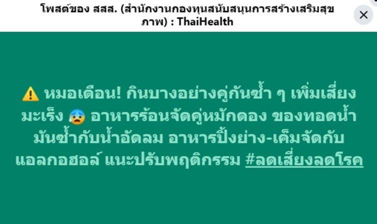 หมอเตือน! กินบางอย่างคู่กันซ้ำ ๆ เพิ่มเสี่ยงมะเร็ง 😭 อาหารร้อนจัดคู่หมักดอง ของทอดน้ำมันซ้ำกับน้ำอัดลม อาหารปิ้งย่าง-เค็มจัดกับแอลกอฮอล์ แนะปรับพฤติกรรม 📝