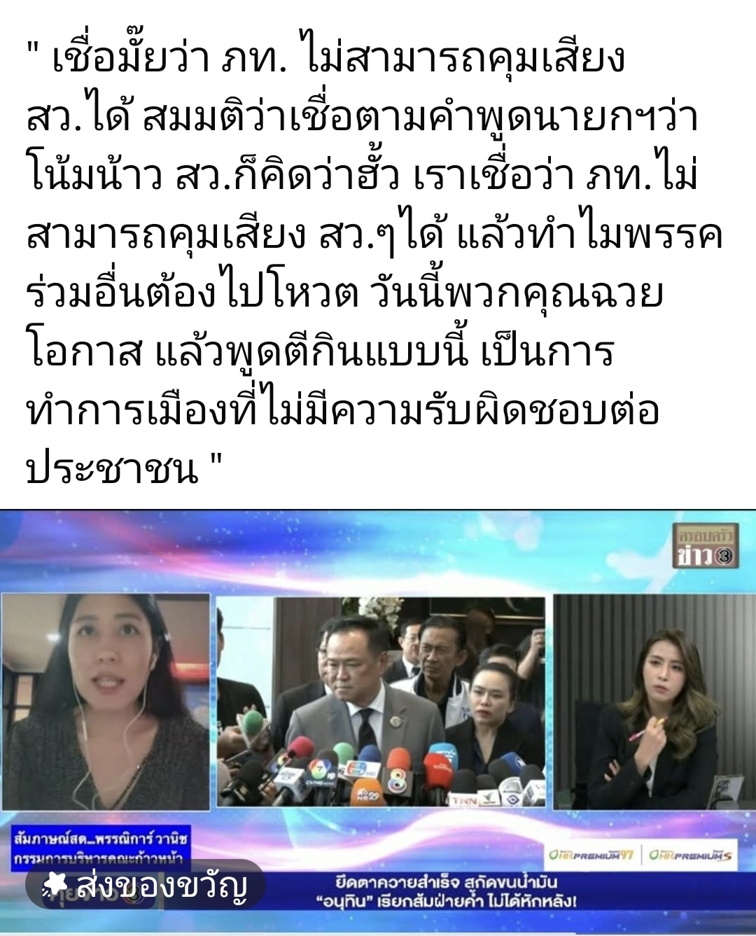 พรรคประชาชนตระบัดสัตย์ต่อประชาชนจก-เอวี เพราะไม่มีการแก้ไขรัฐธรรมนูญตามที่ลั่นวาจา ทำให้ช่อ-พรรณิการ์เสียคน