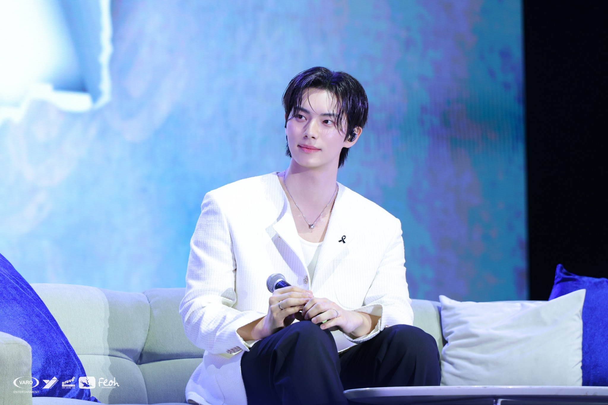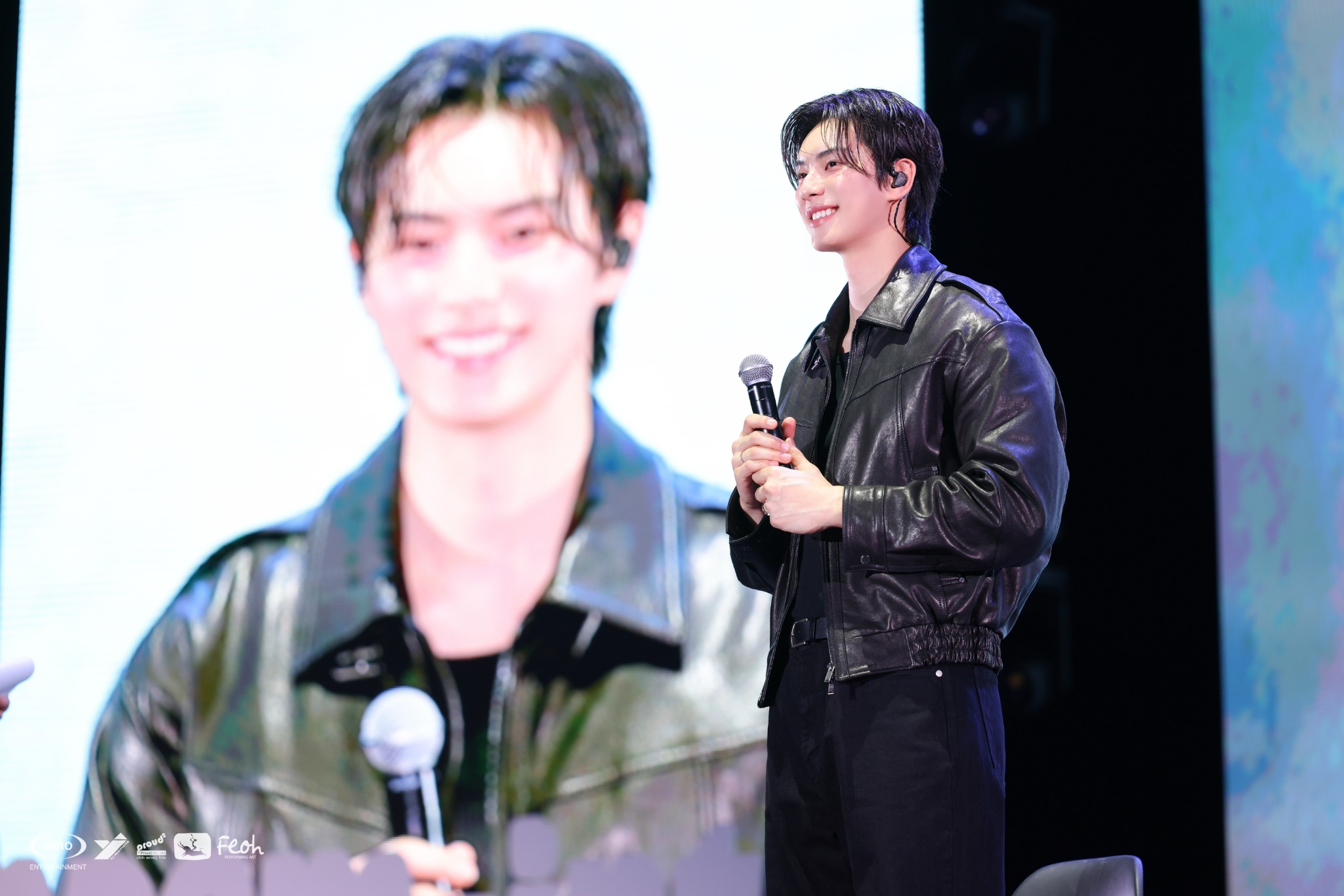 ตอนนี้ผมมีความสุขมากๆ เลยครับ และหวังว่าทุกคนจะมีความสุขไปกับผมนะครับ ผมรู้สึกว่างานวันนี้สั้นมากๆ เหมือนกัน แต่ผมหวังว่าแฟนมีตติ้งในวันนี้จะเป็นจุดเริ่มต้นให้พวกเราได้เจอกันบ่อยๆ ในอนาคตนะครับ วันนี้รู้สึกขอบคุณทุกคนมากๆ เป็นความทรงจำที่ดีมากๆ ในอนาคตผมจะกลับมาหาทุกคนพร้อมด้วยภาพลักษณ์ที่ดี รักนะครับ”