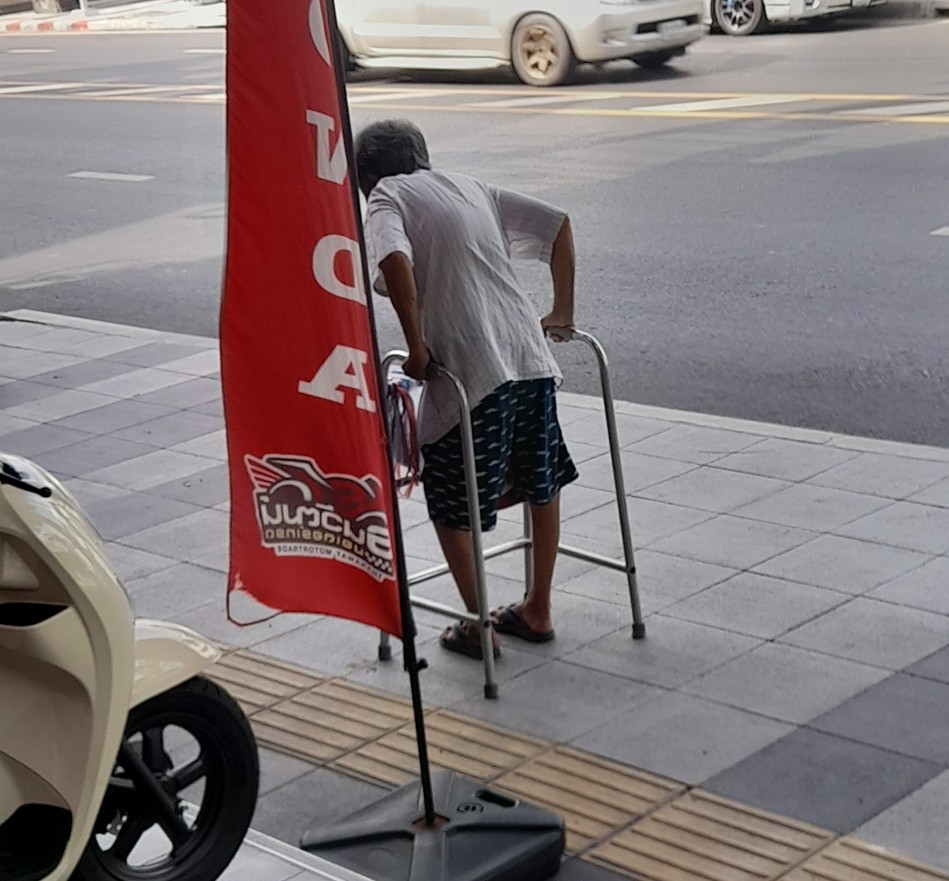 เริ่มต้นเรื่องคือ ป้าในภาพประกอบ จะเดินด้วยวอล์คเกอร์ ข้ามถนน มาธนาคารเดือนละครั้ง