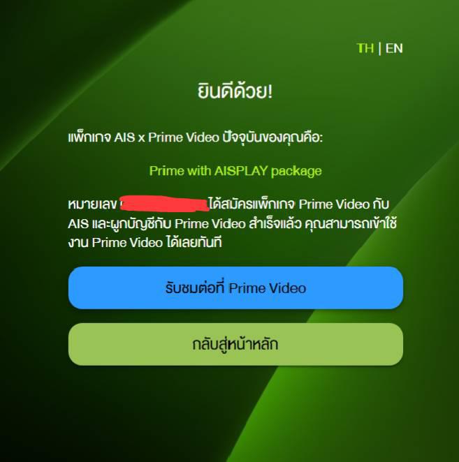 สมัครแพ็กเกจ ais play premium plus ไปแต่ Prime Video ไม่ส่ง SMS ให้ลงทะเบียน