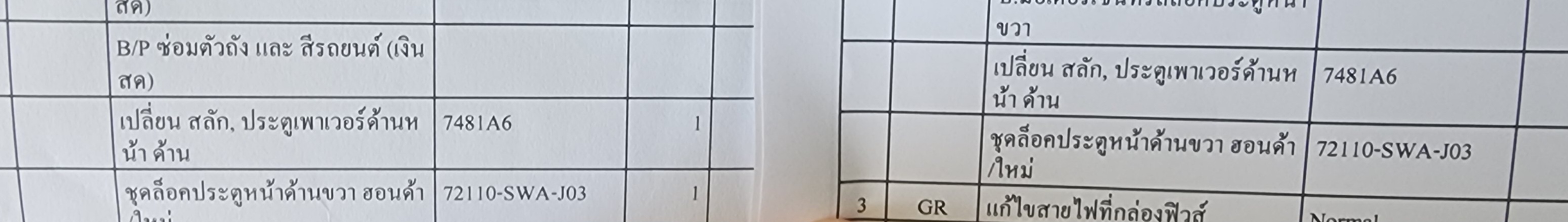 Side story ผมนำรถไปเช็คซึ่งเสียค่าเช็ค 0.5 ชม ของค่าแรง 550 และเสียค่าอะไหล่เต็มจำนวนพนักงานไม่มีการแจ้งรายการว่าซ่อมมาแล้วบ้างไหมผมนัดไว้คิวเช้า 09.00 วันเสาร์ ระยะทางในการขับไปประมาณไป กลับ 50 กม ระยะเวลาในการซ่อมในใบเขียนว่า 2 ชม พนักงานแจ้งว่าไม่รวมล้างรถ