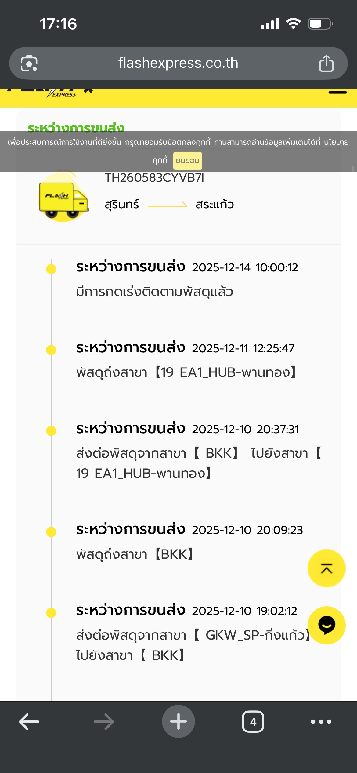 พัสดุ Flash ส่งของไปให้เพื่อนที่อยู่สระแก้ว แต่พัสดุทำไมไปค้างอยู่พานทองนานจัง