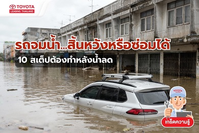 วินาทีที่เห็นรถจมน้ำอยู่ตรงหน้า คงทำให้หลายคนใจสลาย ความเสียหายที่มองเห็นบวกกับ ความกังวลถึงค่าซ่อมที่มองไม่เห็น อาจทำให้รู้สึกสิ้นหวัง แต่ก่อนจะถอดใจ ลองมาตั้งสติและทำตาม 10 สเต็ปสำคัญ ที่โตโยต้า ลีสซิ่ง นำมาแชร์ ซึ่งจะช่วยฟื้นฟูรถจมน้ำของคุณจากหนักให้เป็นเบาได้ การรับมืออย่างถูกวิธีหลังน้ำท่วมรถคือหัวใจสำคัญที่สุด ที่จะเพิ่มโอกาสให้รถสุดที่รักของคุณกลับมาใช้งานได้อีกครั้ง อ่านรายละเอียดเพิ่มเติมได้ที่ https://www.tlt.co.th/knowledge-detail/Gq2P5x0AKX