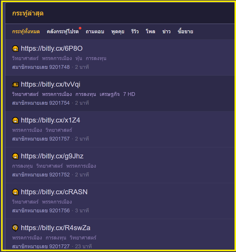 กระทู้แรกสุดก็ถูกตั้งไปครึ่งชั่งโมงแล้ว ควรจะถูกลบไปได้แล้ว .... เท่าที่สังเกตมาประมาณ 6 เดือนกระทู้พวกนี้มันก็ขึ้นต้นด้วย https://bitlly .... ผมว่าถ้าทางทีมงานพันทิปตั้งมาตรการที่จะรับมือกระทู้ SPAM เหล่านี้ก็คงทำได้อย่างง่าย ๆ ไปนานแล้ว และกระทู้พวกนี้ก็ถูกตั้งจากการสมัคร account ใหม่ที่ง่ายเกินไป ขอเถอะช่วยมีมาตรการอะไรที่มันแข็งแกร่งสมกับเป็นเว็บสังคมโซเชียลอันดับหนึ่งของไทยหน่อยเถอะครับ